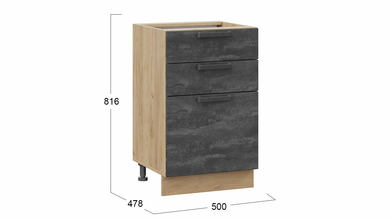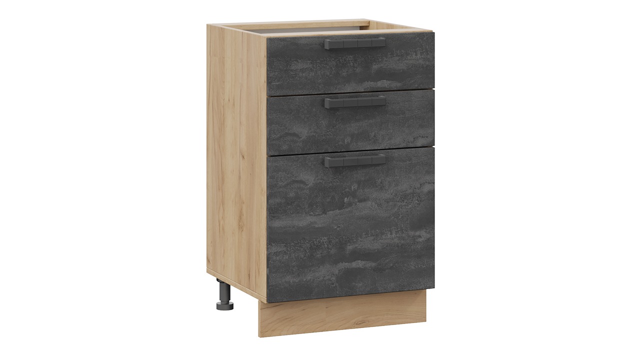 Шкаф напольный с тремя ящиками «Детройт» - 1Н5Я3 Дуб Крафт золотой, Угольный Камень – 1 шт.