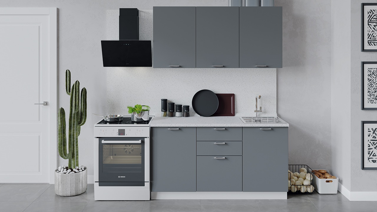 | Габаритный размер набора модулей без учета газовой плиты1 500 | Оттенок фасадаСерый | Цвет ручкиМеталл |