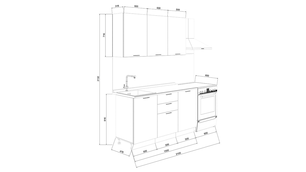 | Габаритный размер набора модулей без учета газовой плиты | 1 500 |