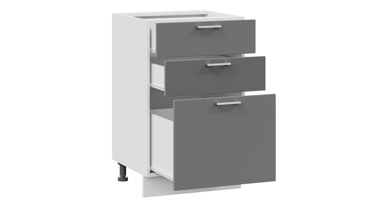 Шкаф напольный с тремя ящиками «Габриэлла» - 1Н5Я3 Белый, Титан – 1 шт.