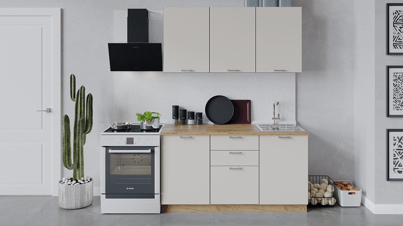 | Габаритный размер набора модулей без учета газовой плиты1 500 | Оттенок фасадаБежевый | Цвет ручкиМеталл |