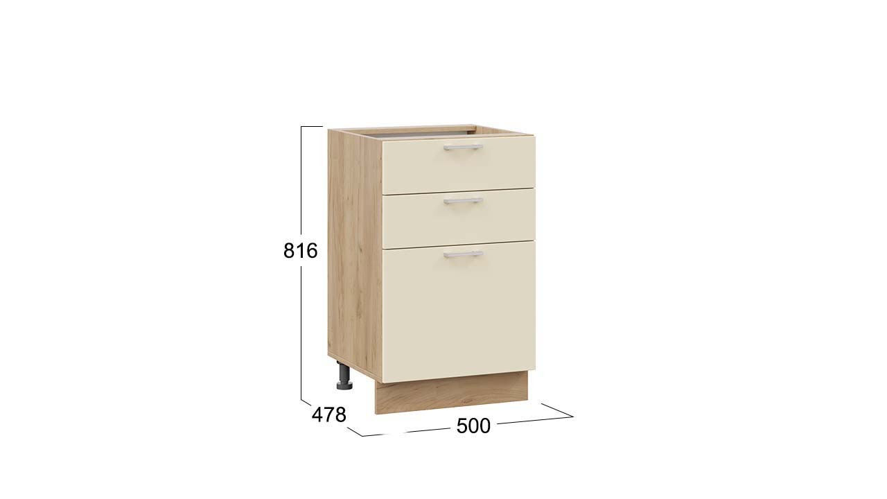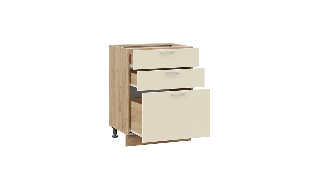 Шкаф напольный с тремя ящиками «Габриэлла» - 1Н5Я3 Дуб Крафт золотой, Крем – 1 шт.