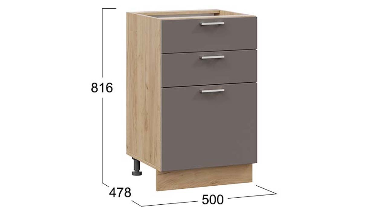 Шкаф напольный с тремя ящиками «Габриэлла» - 1Н5Я3 Дуб Крафт золотой, Муссон – 1 шт.