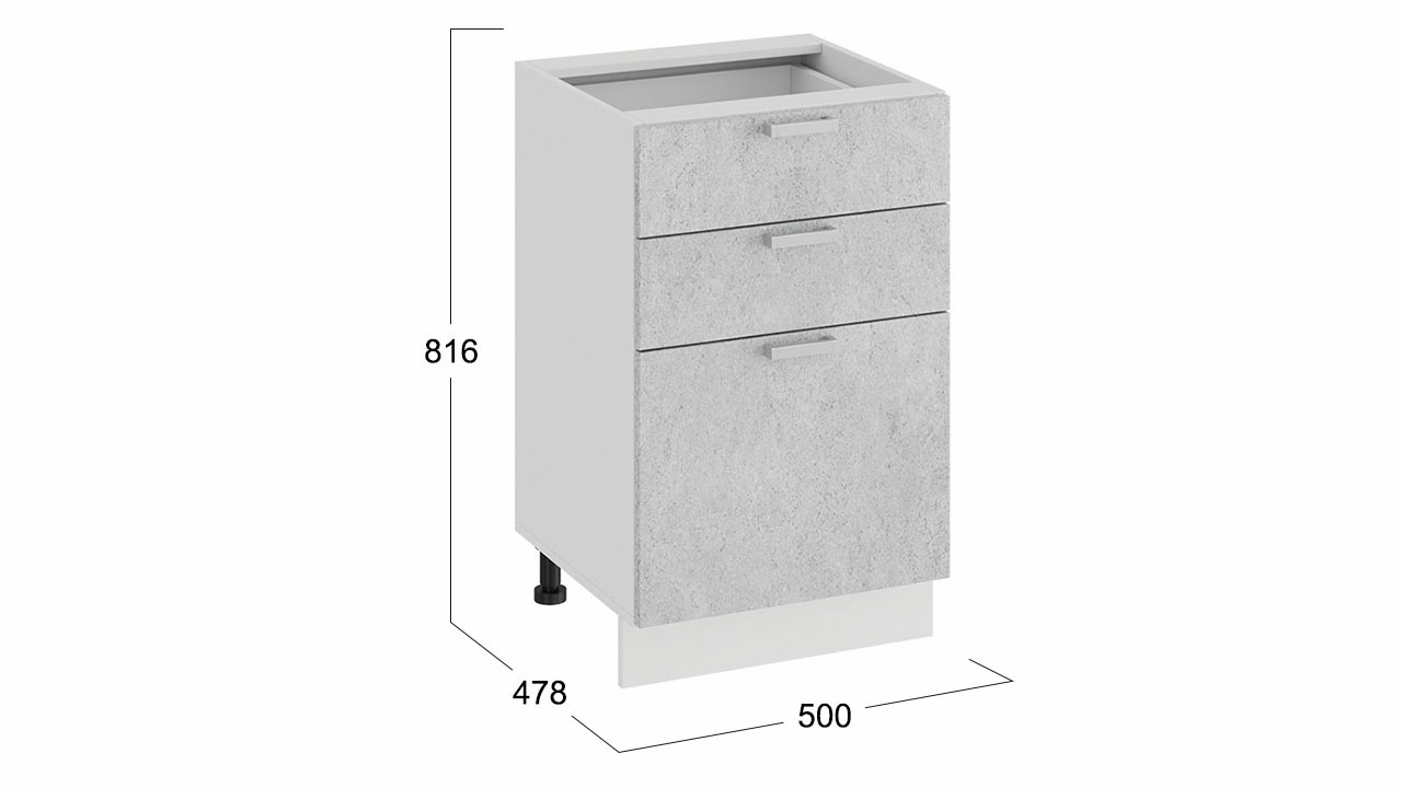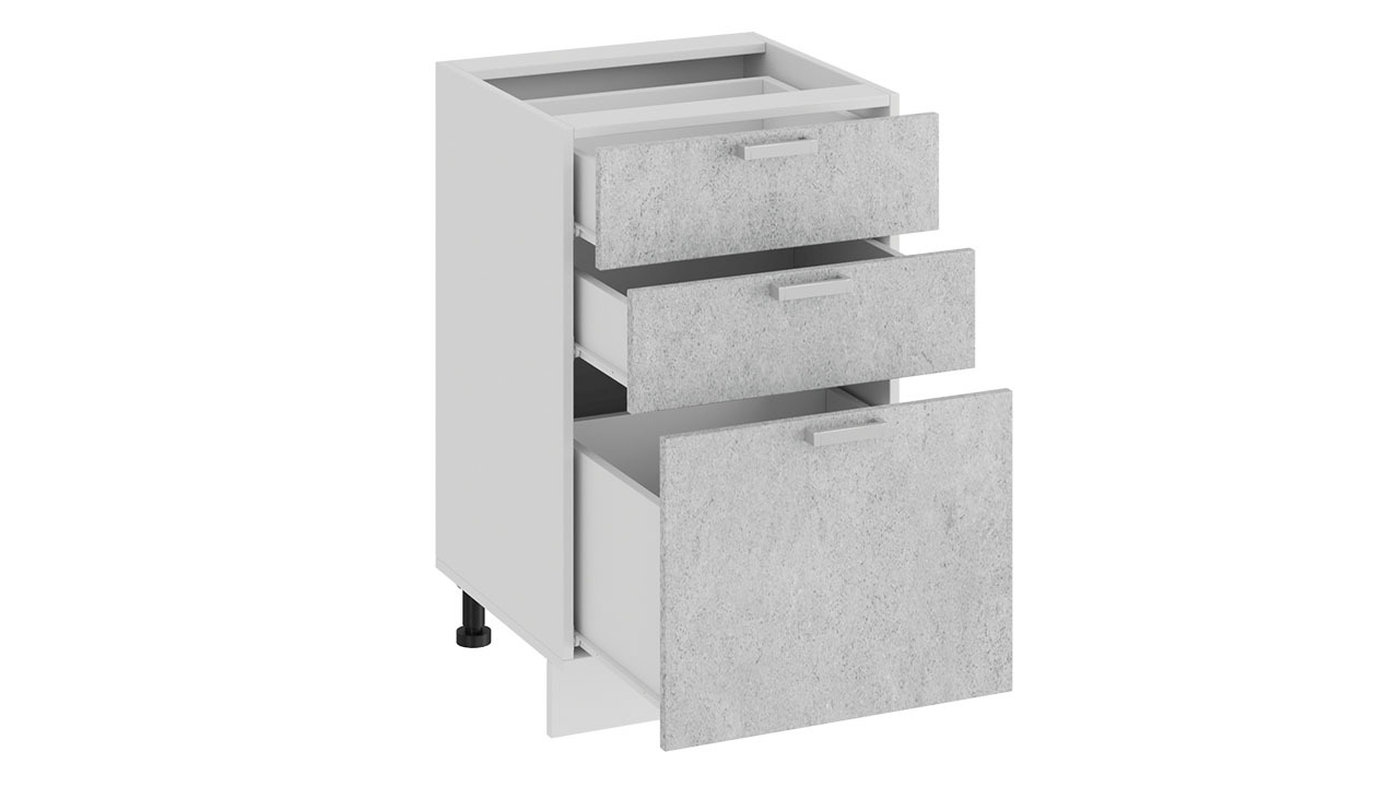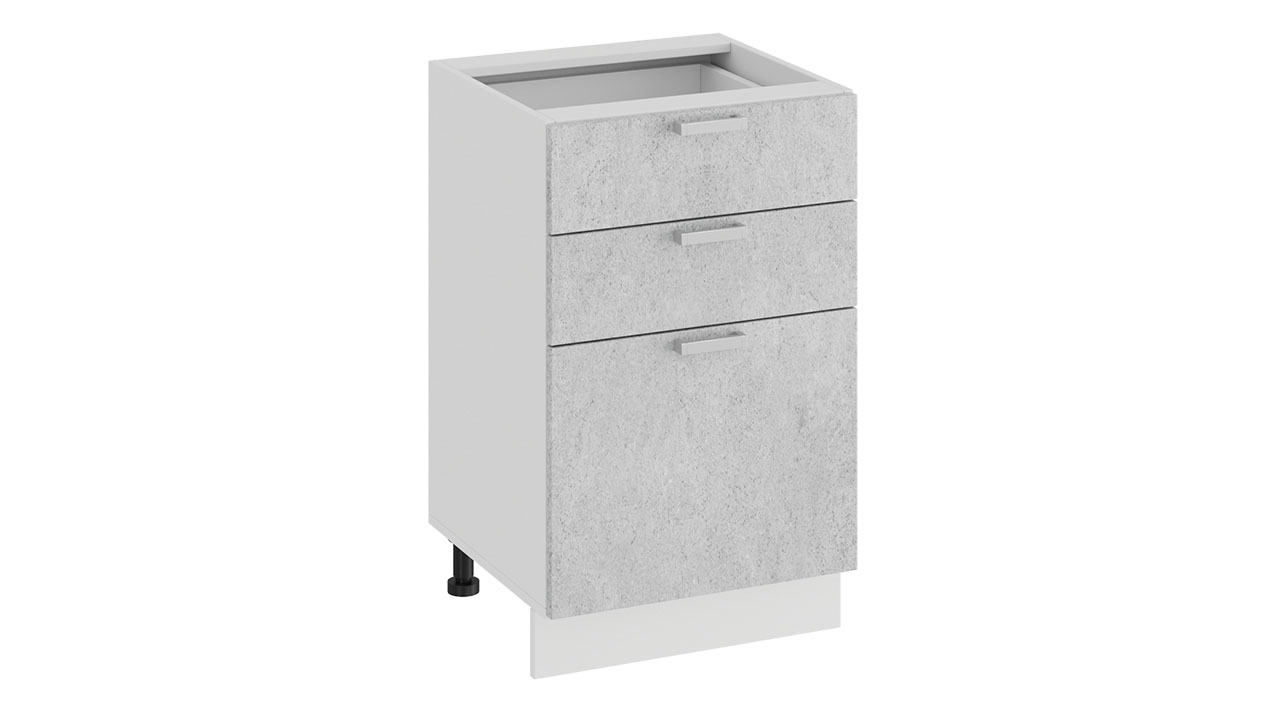 Шкаф напольный с тремя ящиками «Гранита» - 1Н5Я3 Белый, Бетон снежный – 1 шт.