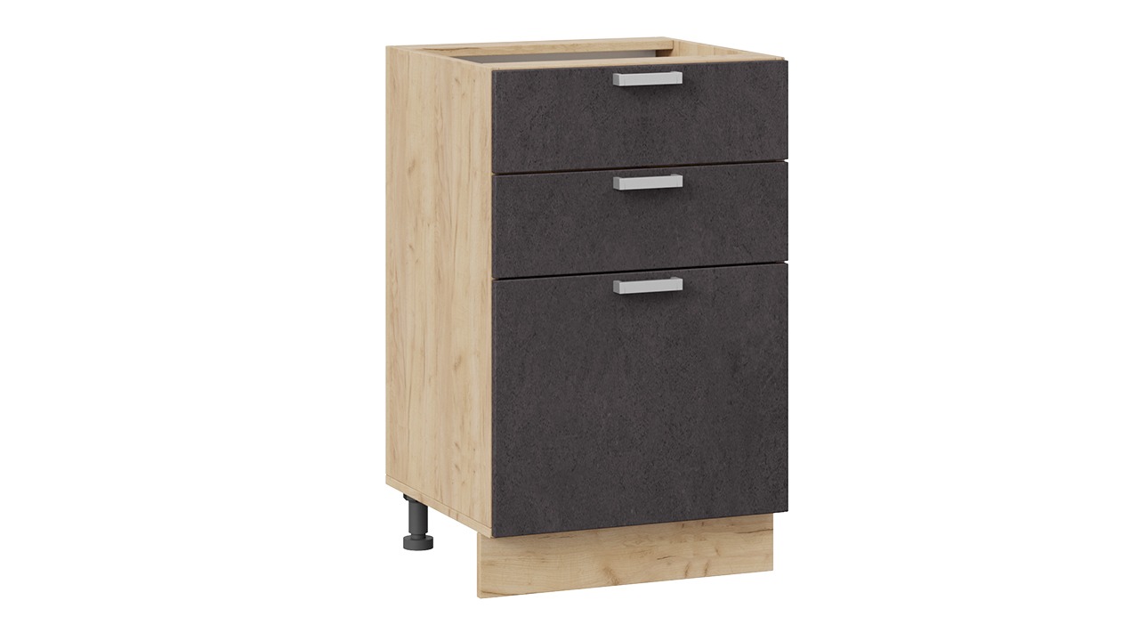Шкаф напольный с тремя ящиками «Гранита» - 1Н5Я3 Дуб Крафт золотой, Бетон графит – 1 шт.