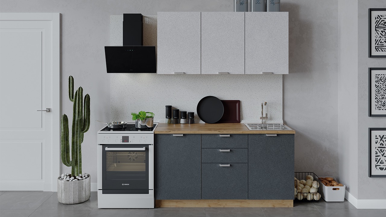 | Габаритный размер набора модулей без учета газовой плиты1 500 | Оттенок фасадаСерый | Цвет ручкиАлюминий |