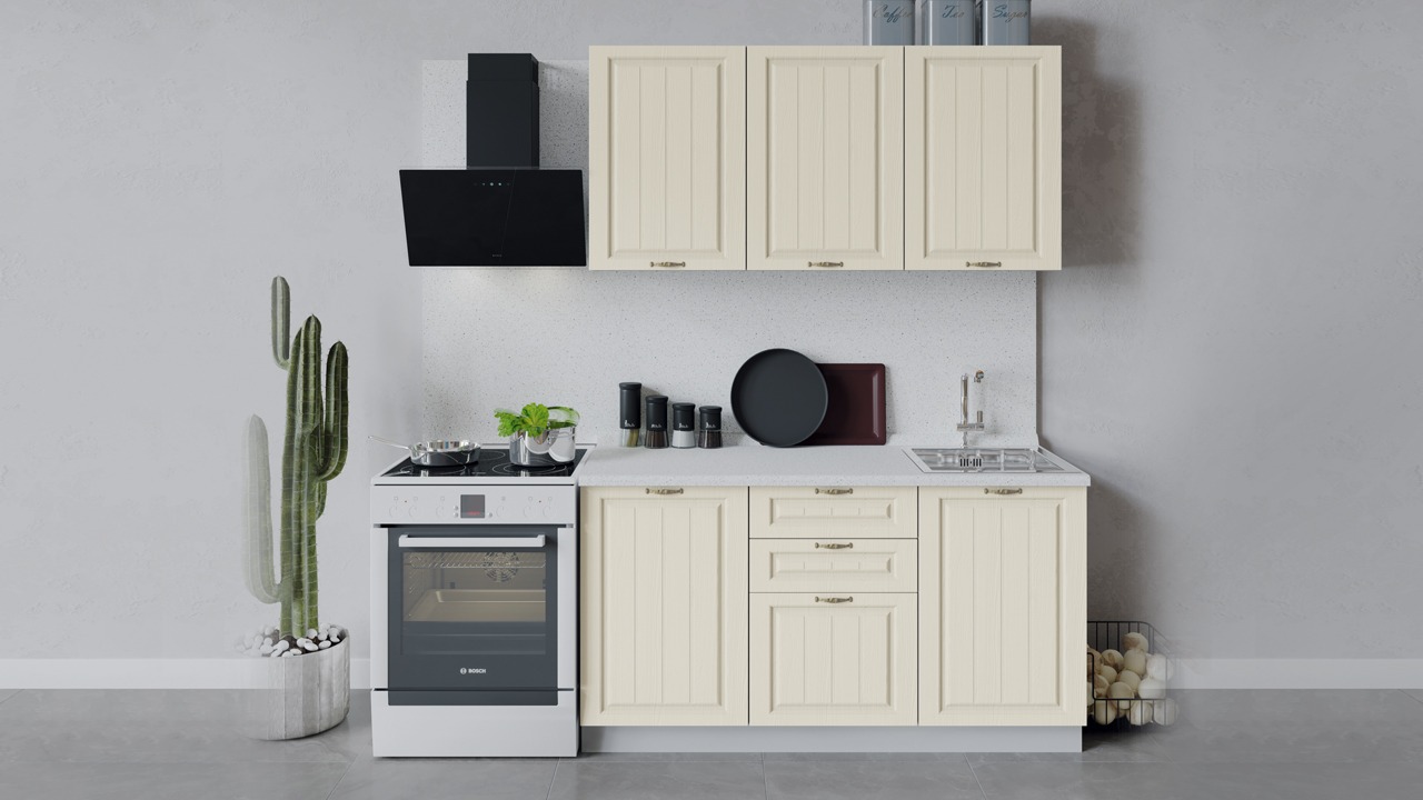 | Габаритный размер набора модулей без учета газовой плиты1 500 | Оттенок фасадаБежевый | Цвет ручкиБрашированная старинная бронза |