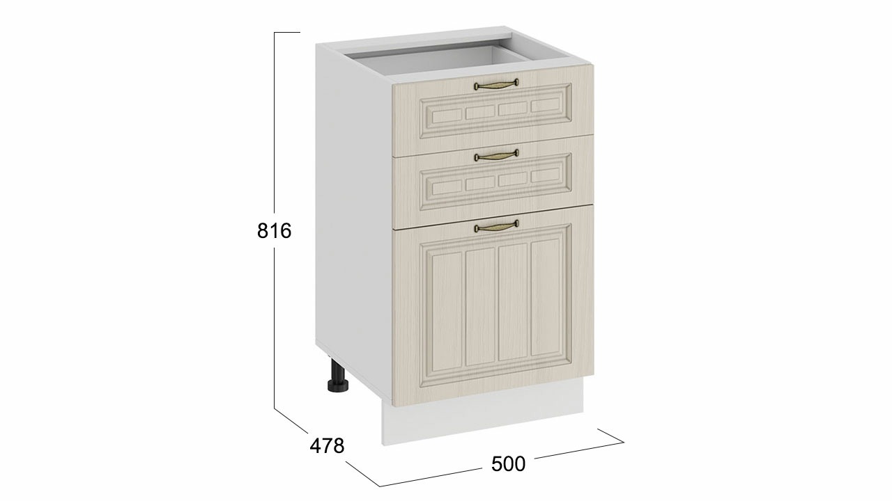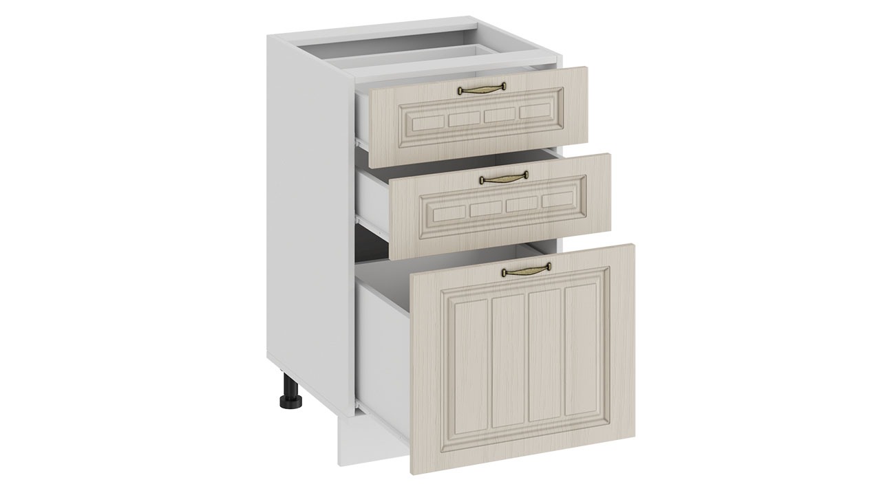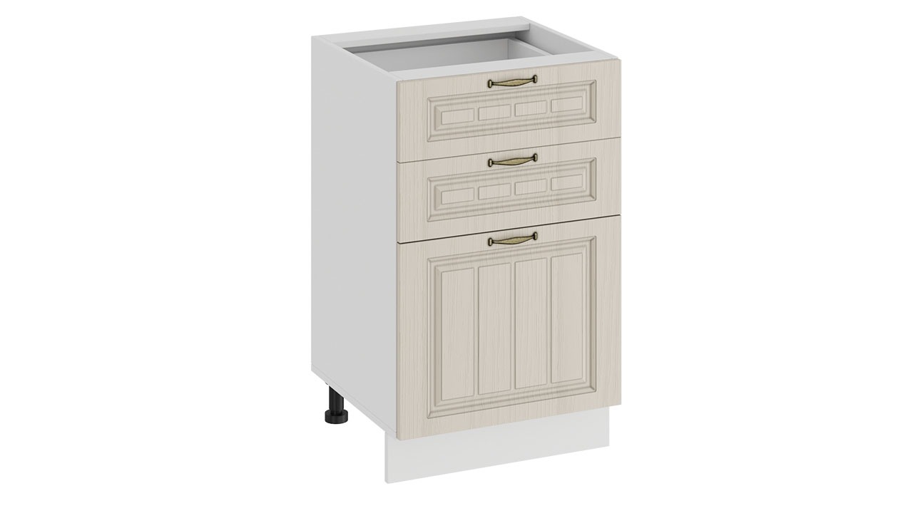Шкаф напольный с тремя ящиками «Лина» - 1Н5Я3 Белый, Крем – 1 шт.