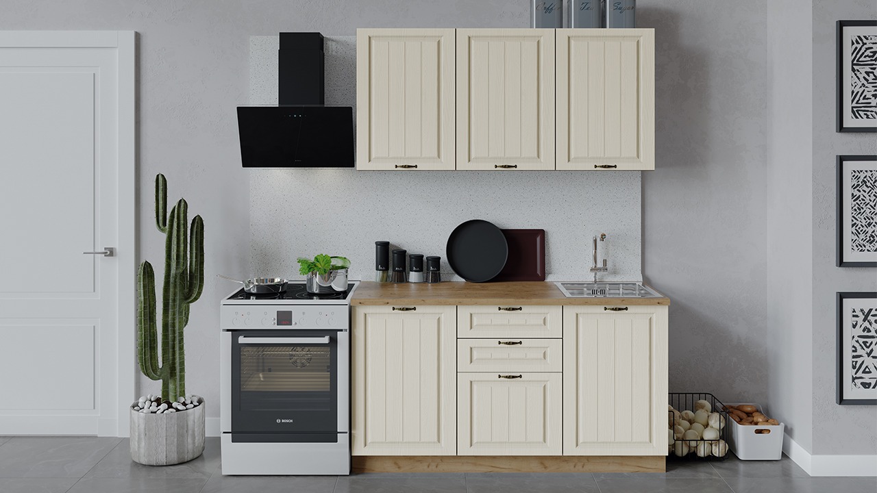 | Габаритный размер набора модулей без учета газовой плиты1 500 | Оттенок фасадаБежевый | Цвет ручкиБрашированная старинная бронза |