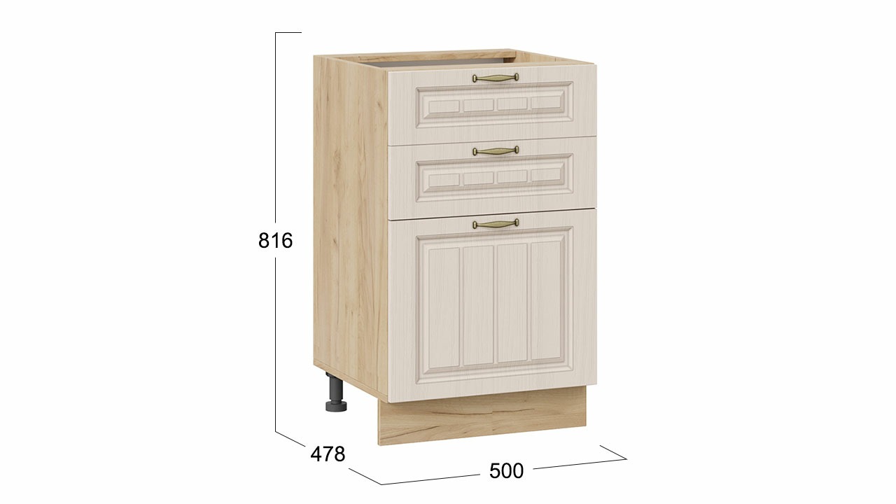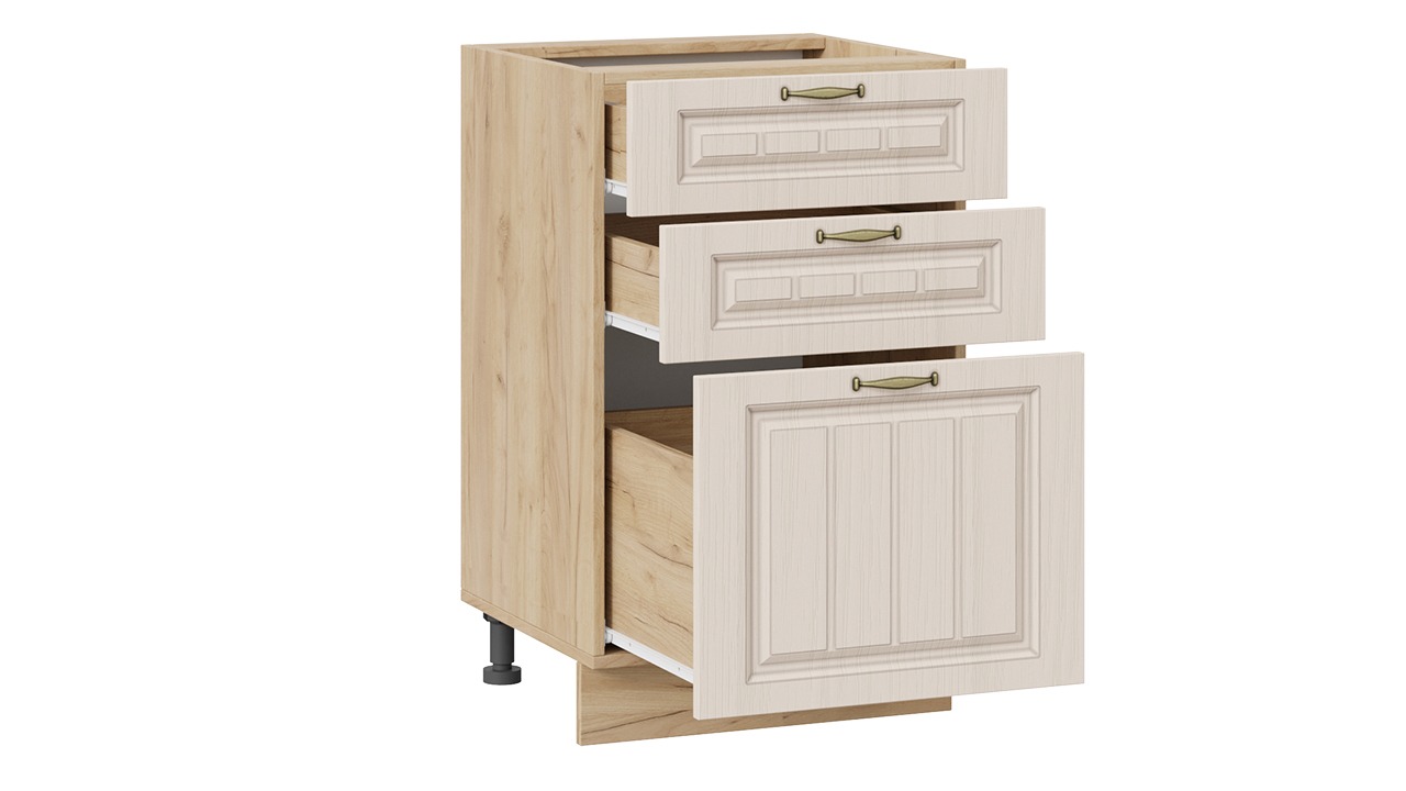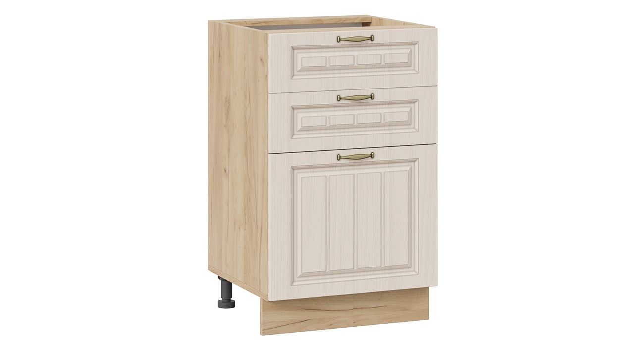 Шкаф напольный с тремя ящиками «Лина» - 1Н5Я3 Дуб Крафт золотой, Крем – 1 шт.