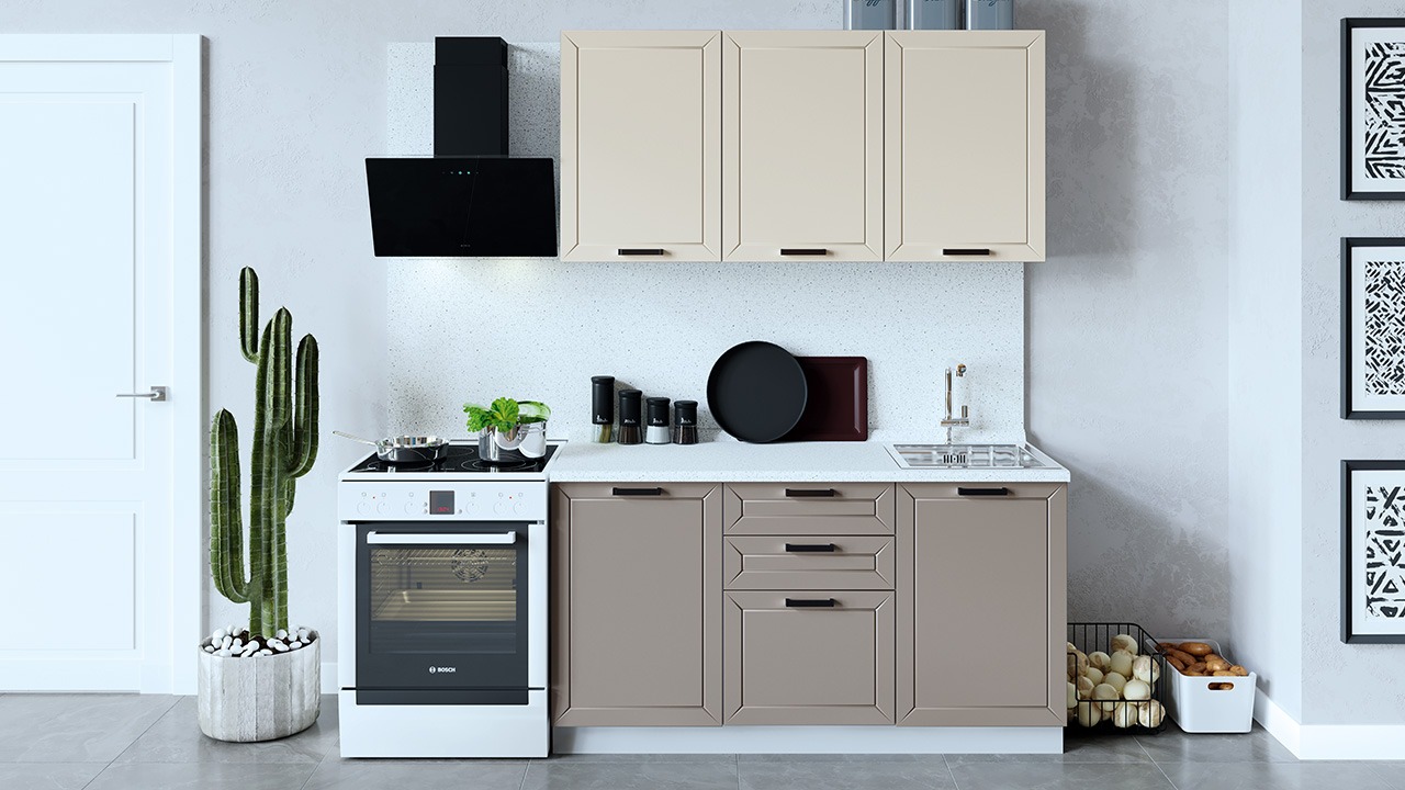 | Габаритный размер набора модулей без учета газовой плиты1 500 | Оттенок фасадаБежевый, Коричневый | Цвет ручкиЧерный |