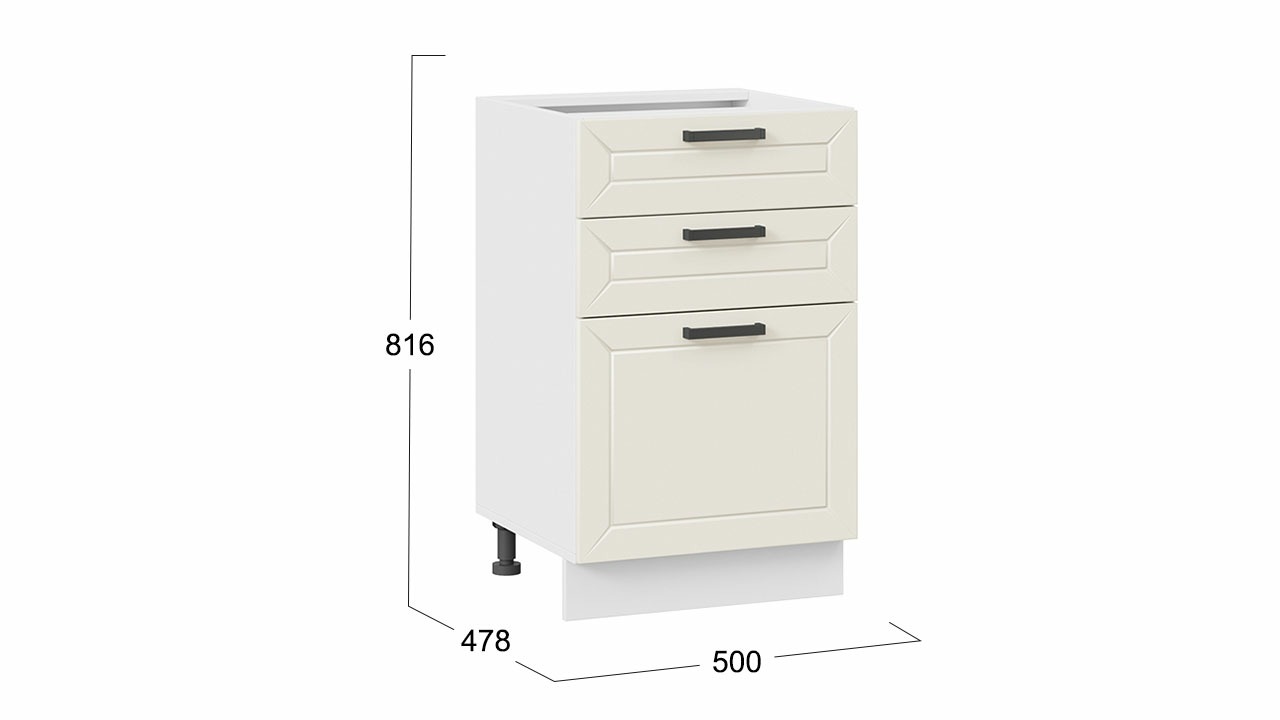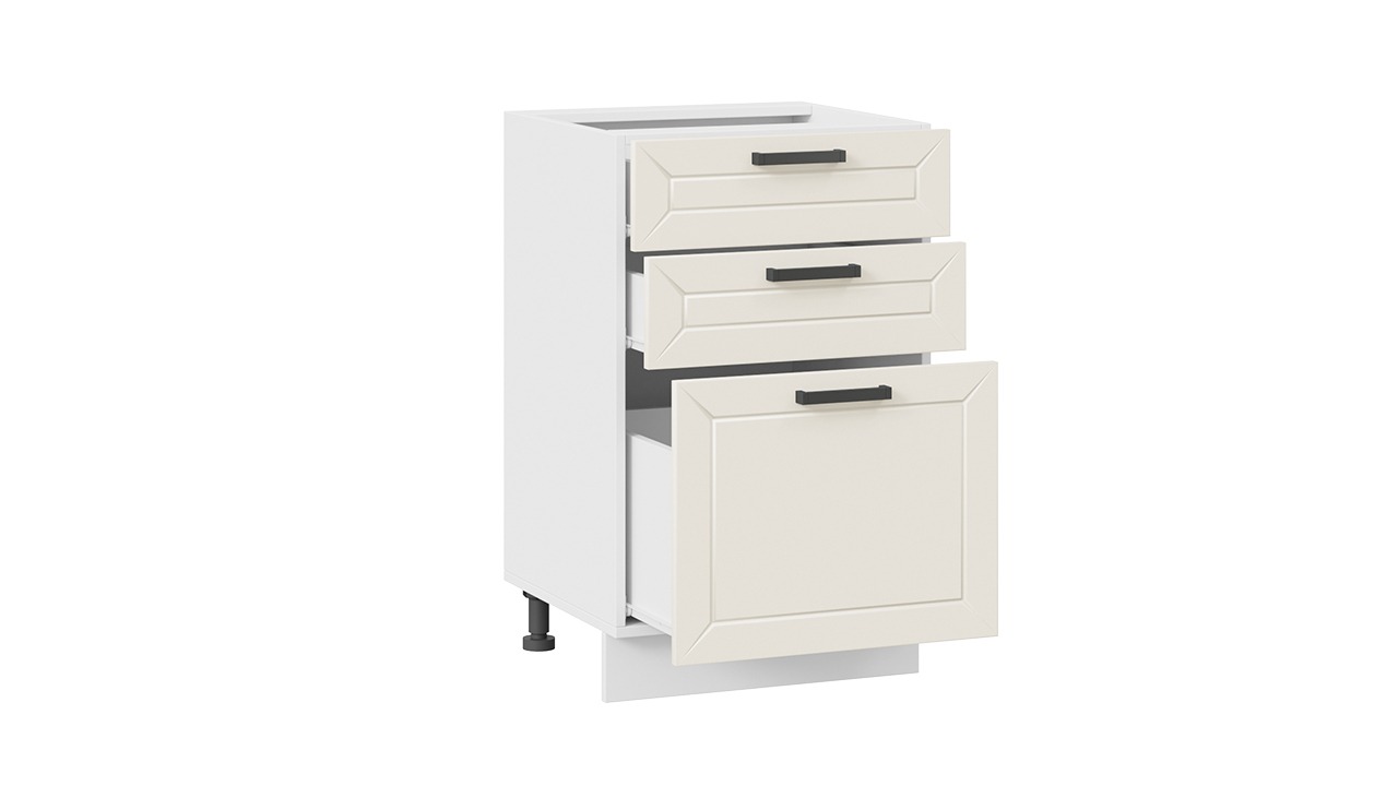 Шкаф напольный с тремя ящиками «Лорас» - 1Н5Я3 Белый, Холст брюле – 1 шт.