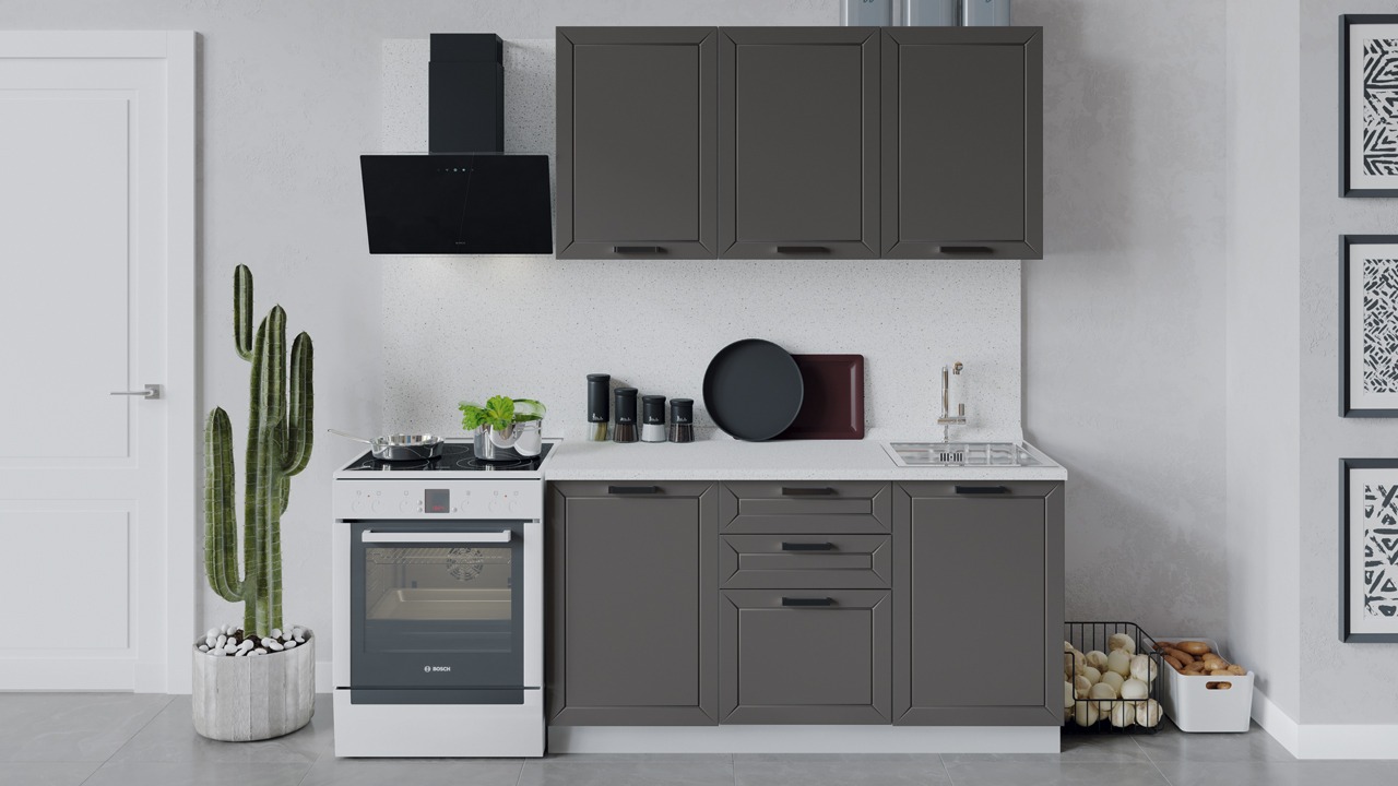 | Габаритный размер набора модулей без учета газовой плиты1 500 | Оттенок фасадаСерый | Цвет ручкиЧерный |