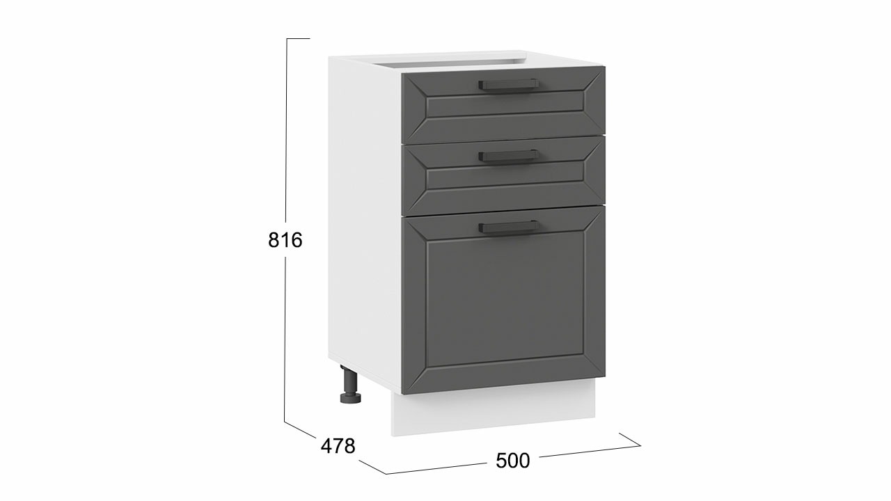Шкаф напольный с тремя ящиками «Лорас» - 1Н5Я3 Белый, Холст Вулкан – 1 шт.