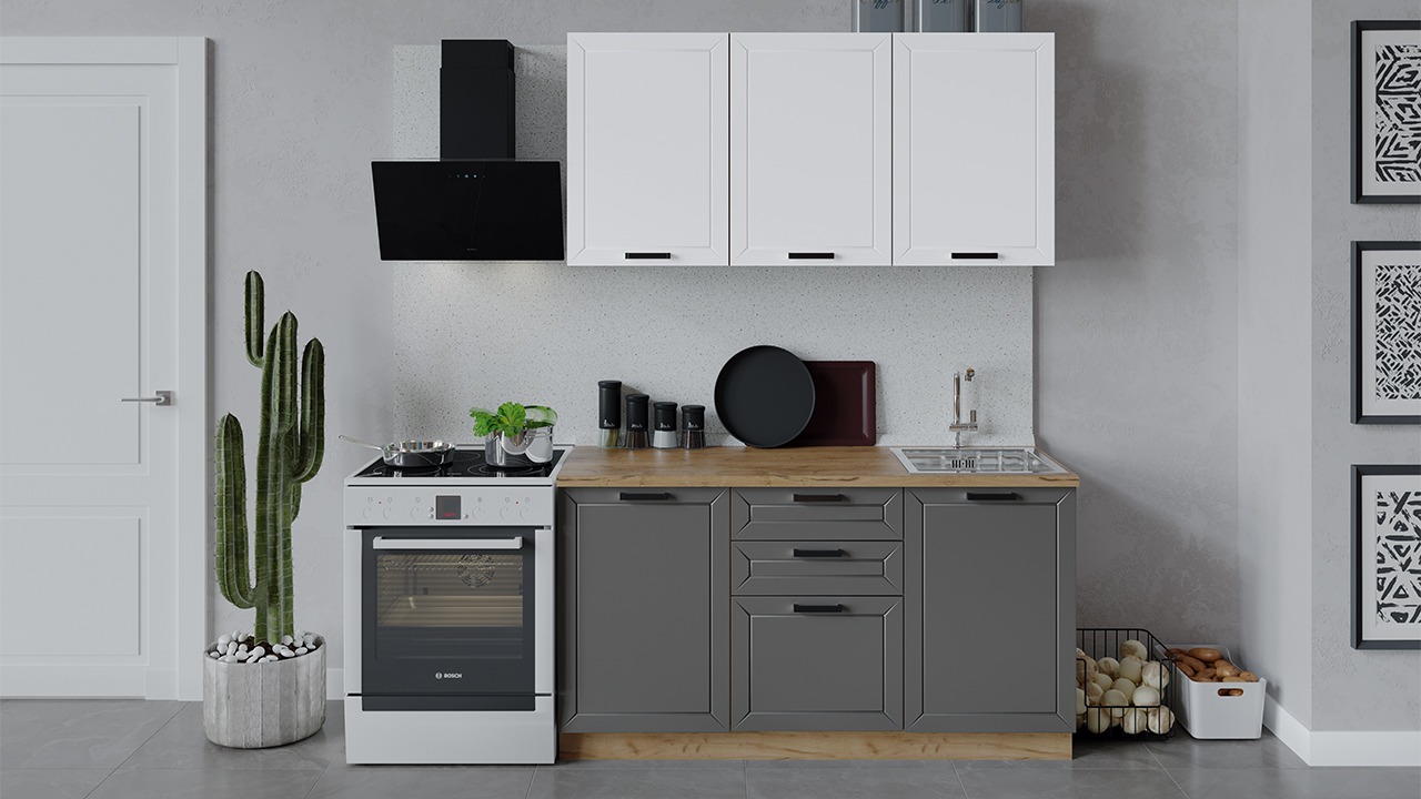 | Габаритный размер набора модулей без учета газовой плиты1 500 | Оттенок фасадаБелый, Серый | Цвет ручкиЧерный |
