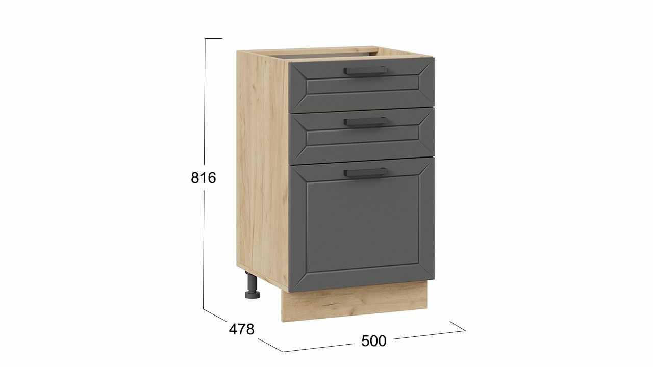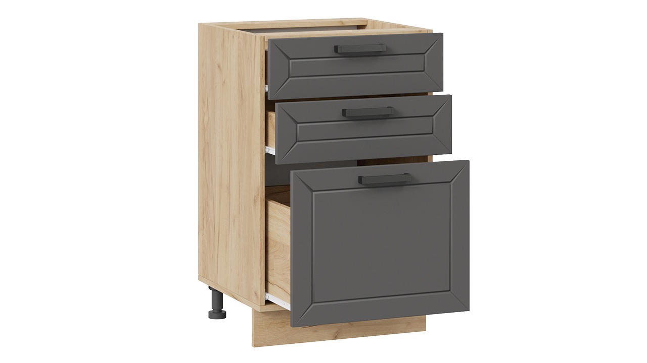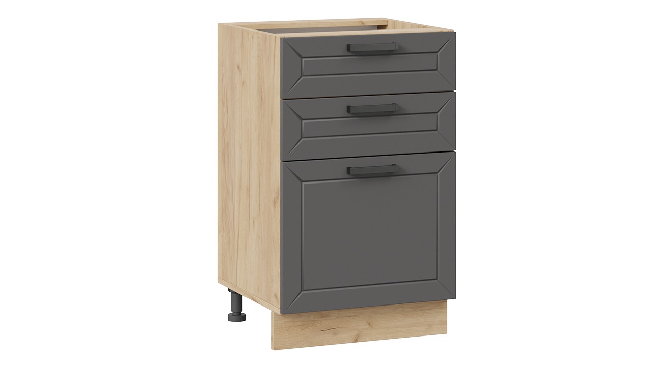Шкаф напольный с тремя ящиками «Лорас» - 1Н5Я3 Дуб Крафт золотой, Холст Вулкан – 1 шт.