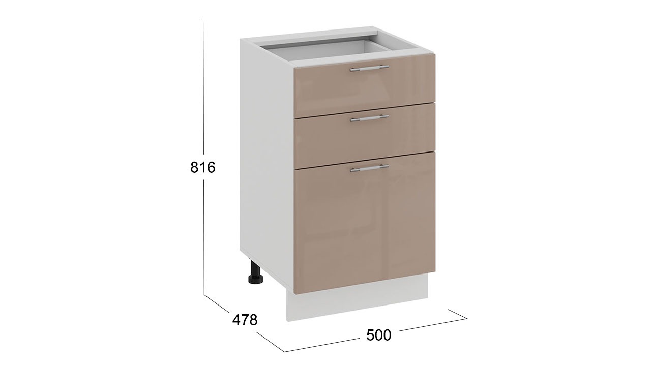 Шкаф напольный с тремя ящиками «Весна» - 1Н5Я3 Белый, Кофе с молоком – 1 шт.