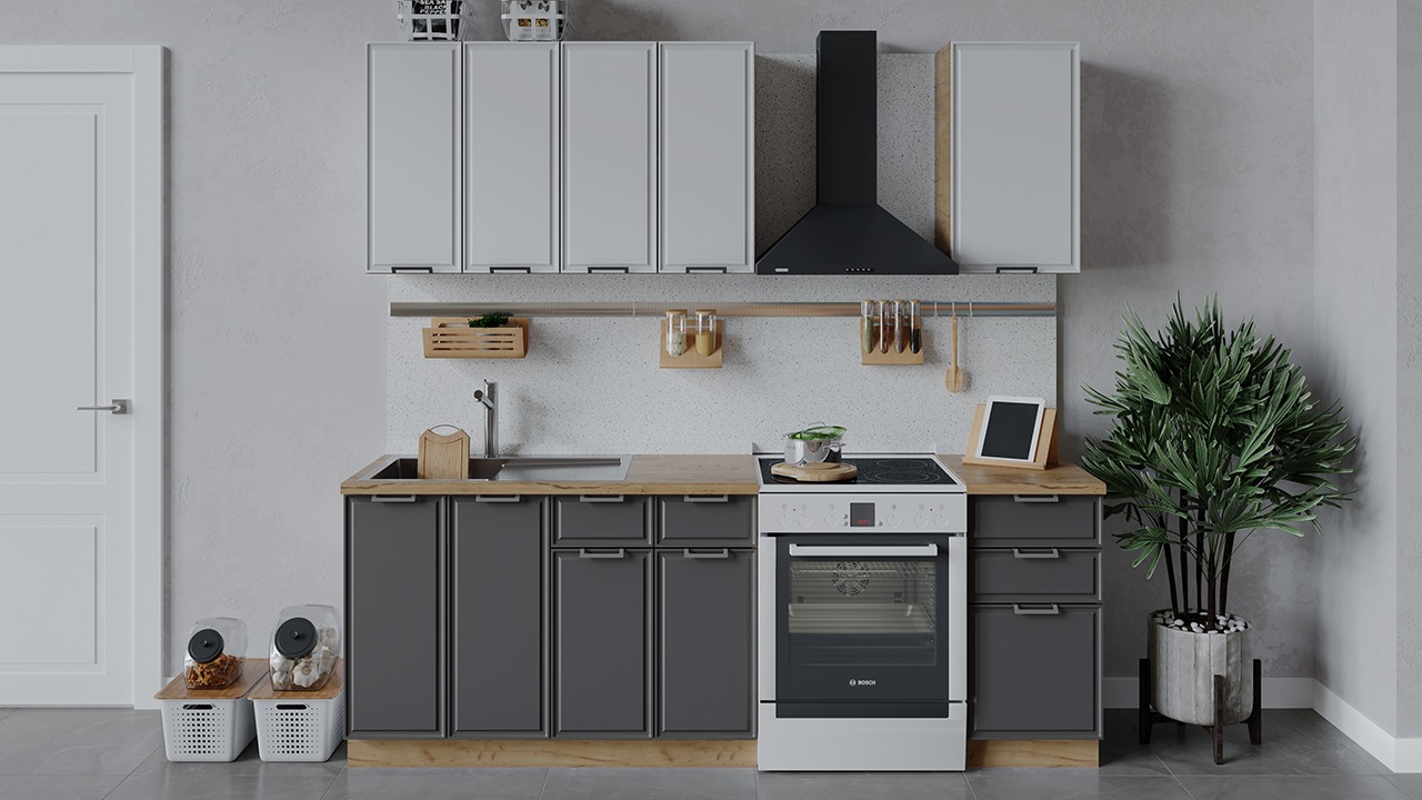 | Габаритный размер набора модулей без учета газовой плиты1 600 | Оттенок фасадаБелый, Серый | Цвет ручкиМеталл |