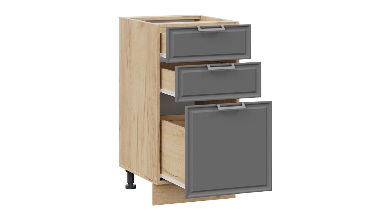 Шкаф напольный с тремя ящиками «Белладжио» - 1Н4Я3 Дуб Крафт золотой, Софт графит – 1 шт.