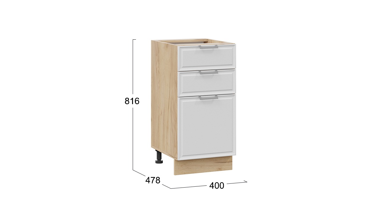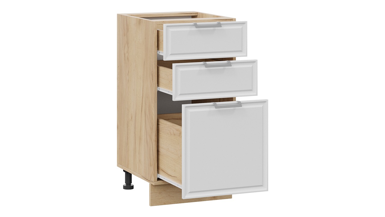 Шкаф напольный с тремя ящиками «Белладжио» - 1Н4Я3 Дуб Крафт золотой, Фон белый – 1 шт.