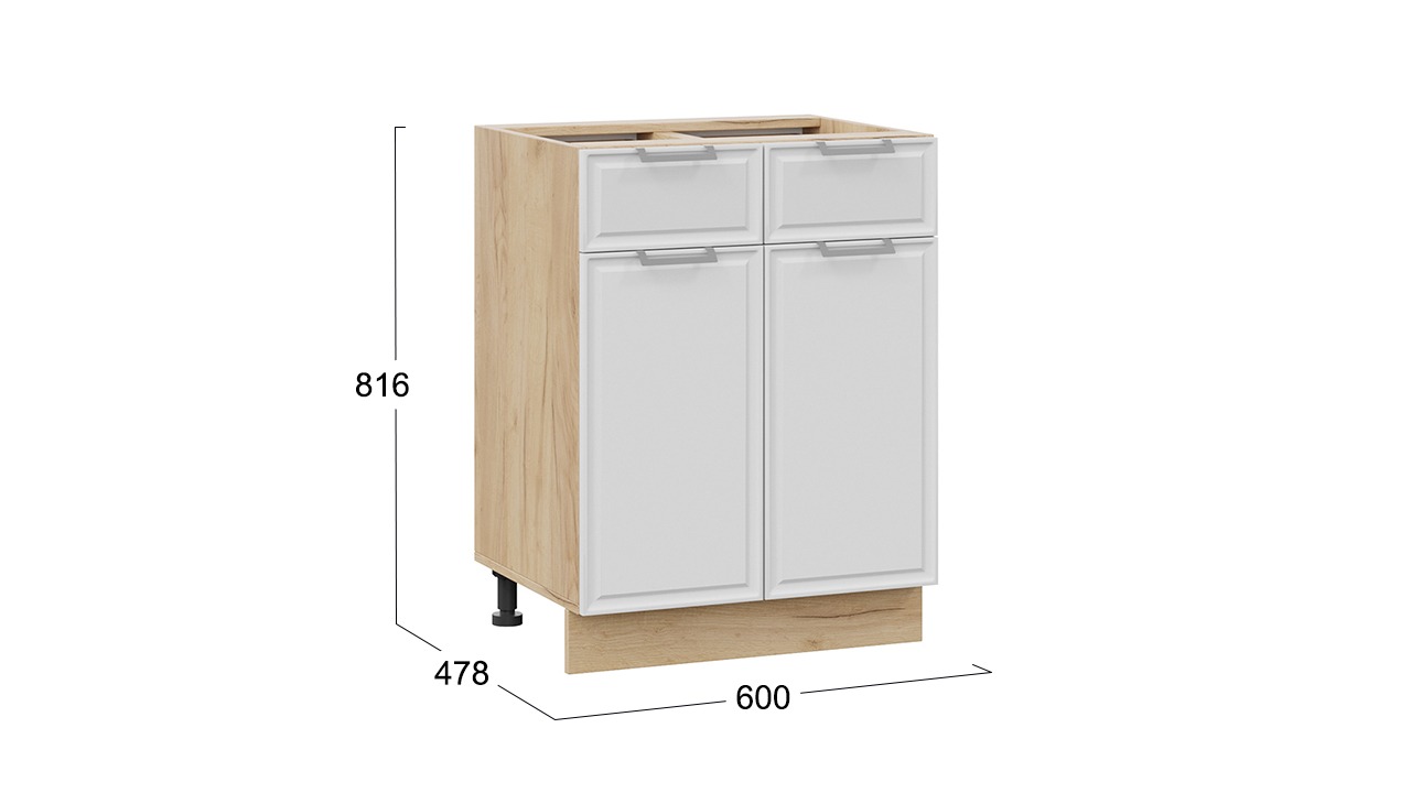 Шкаф напольный с двумя ящиками и двумя дверями «Белладжио» - 1Н6Я1 Дуб Крафт золотой, Фон белый – 1 шт.