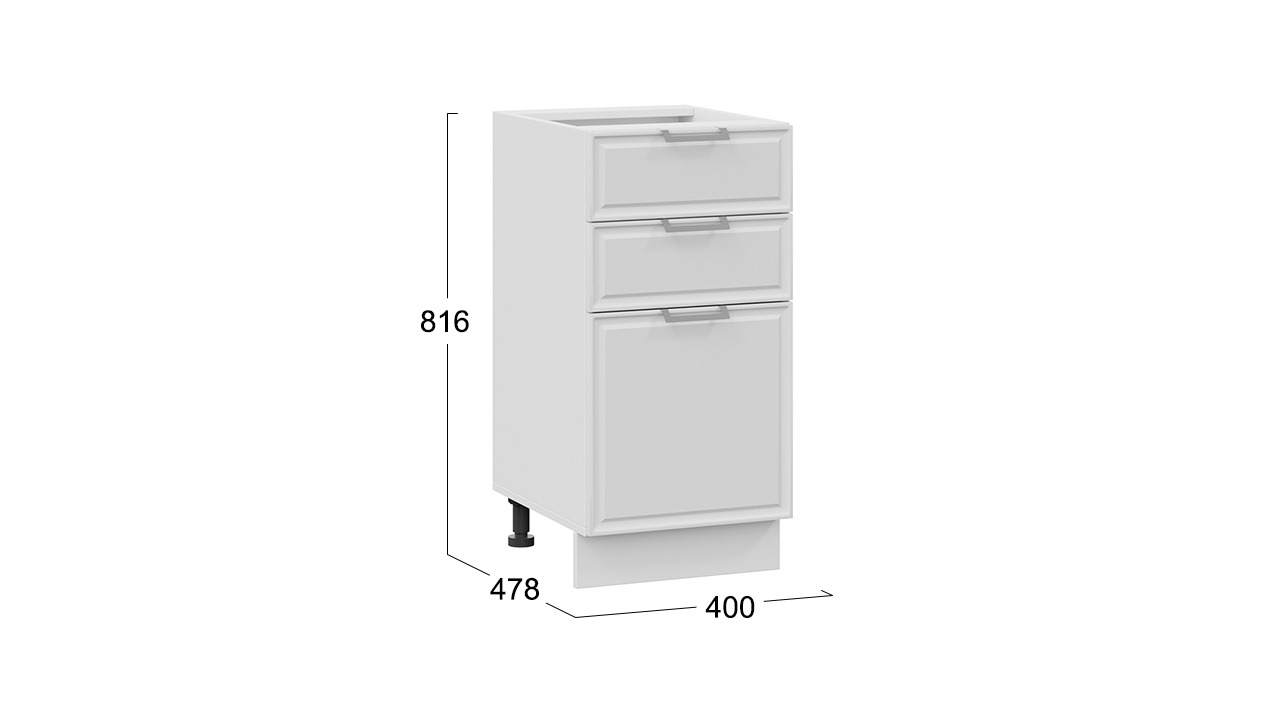 Шкаф напольный с тремя ящиками «Белладжио» - 1Н4Я3 Белый, Фон белый – 1 шт.