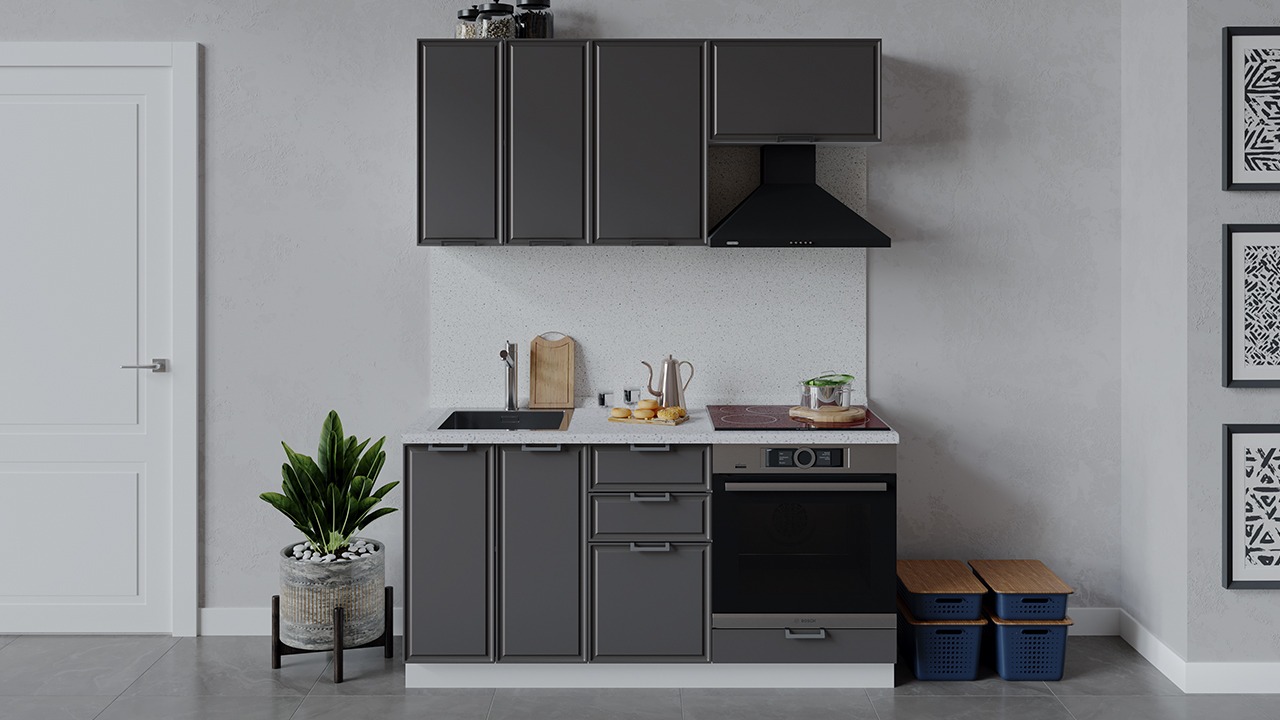 | Габаритный размер набора модулей без учета газовой плиты1 600 | Оттенок фасадаСерый | Цвет ручкиМеталл |