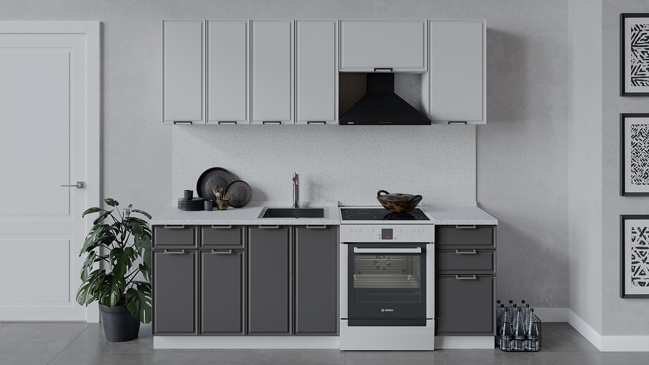 | Габаритный размер набора модулей без учета газовой плиты2 200 | Оттенок фасадаБелый, Серый | Цвет ручкиМеталл |