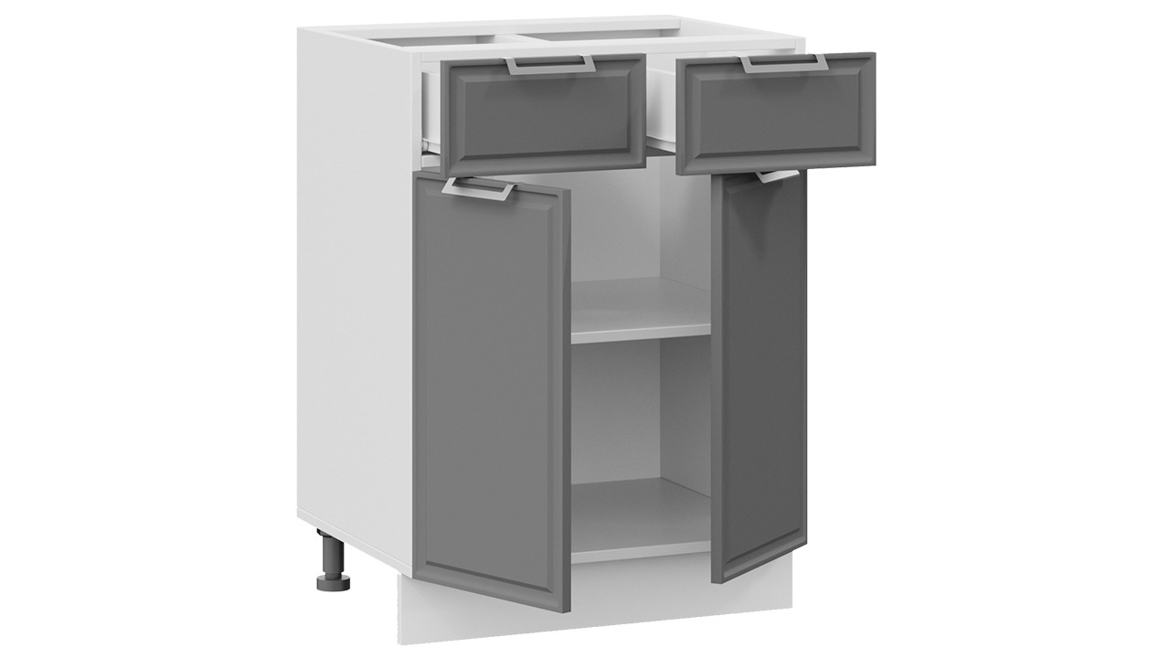 Шкаф напольный с двумя ящиками и двумя дверями «Белладжио» - 1Н6Я1 Белый, Софт графит – 1 шт.