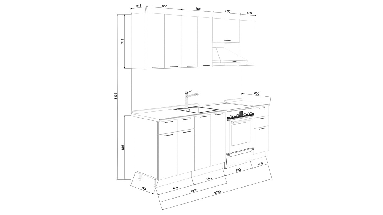 | Габаритный размер набора модулей без учета газовой плиты | 2 200 |