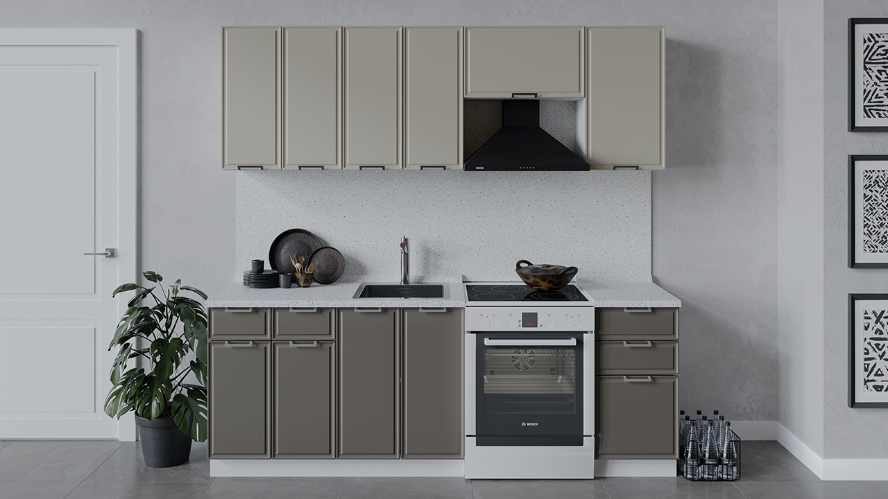 | Габаритный размер набора модулей без учета газовой плиты2 200 | Оттенок фасадаБежевый, Коричневый | Цвет ручкиМеталл |