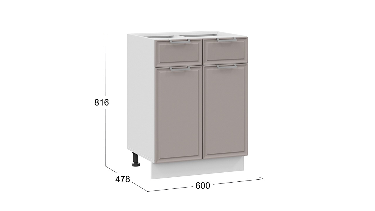 Шкаф напольный с двумя ящиками и двумя дверями «Белладжио» - 1Н6Я1 Белый, Софт капучино – 1 шт.