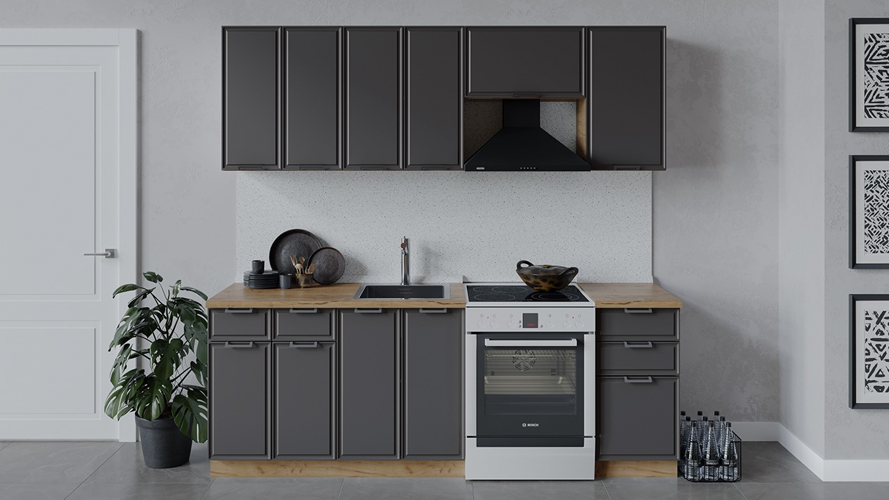 | Габаритный размер набора модулей без учета газовой плиты2 200 | Оттенок фасадаСерый | Цвет ручкиМеталл |
