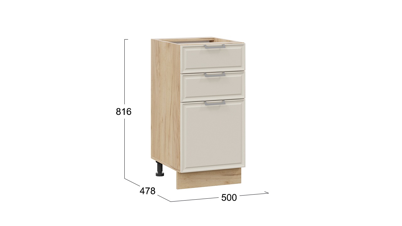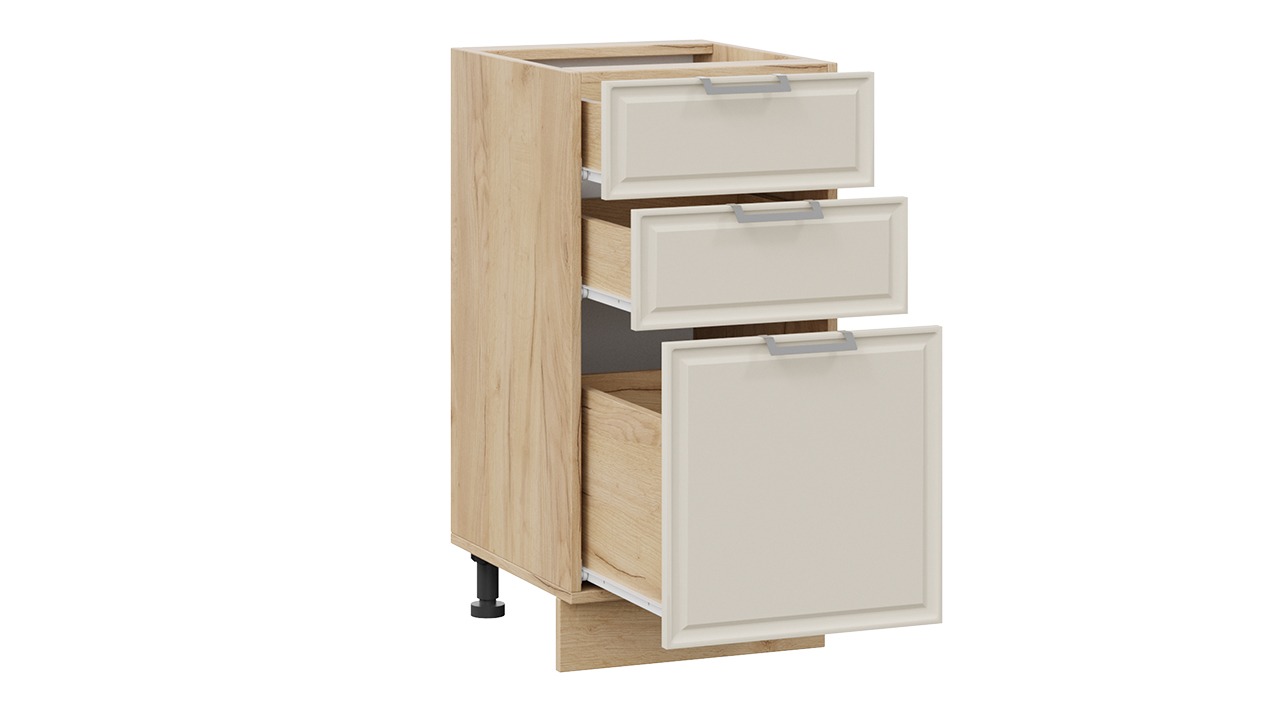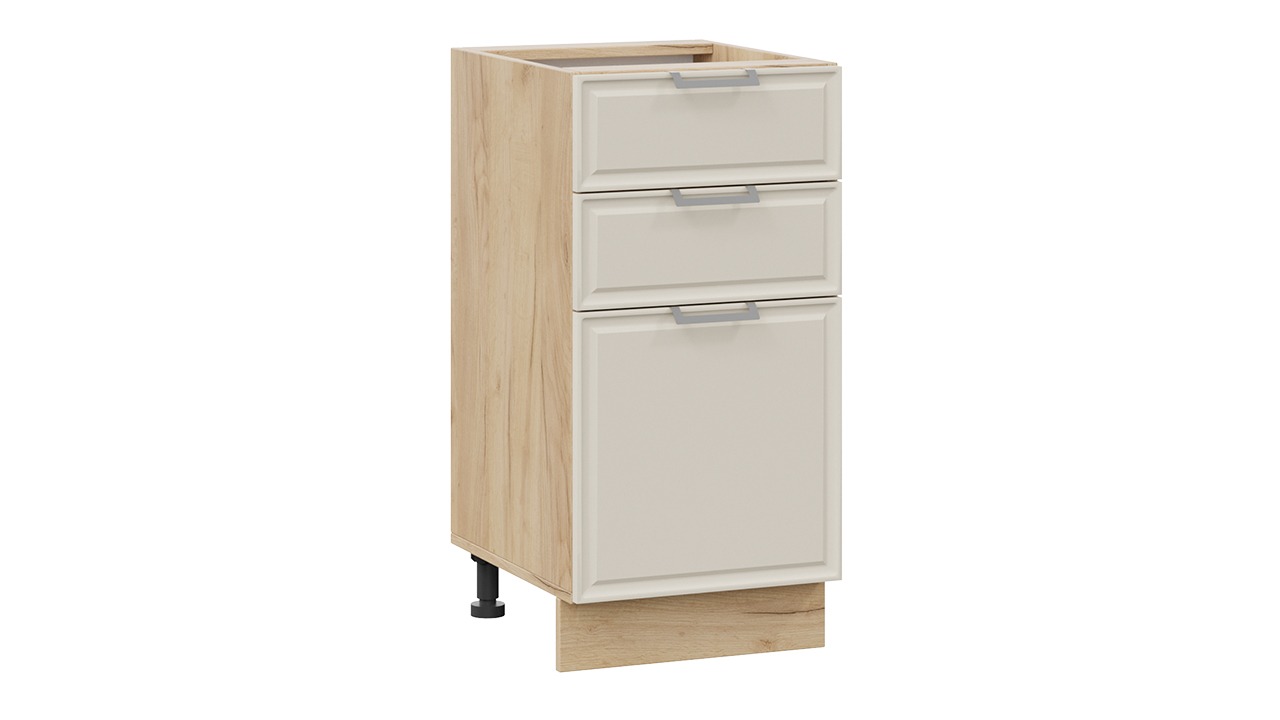 Шкаф напольный с тремя ящиками «Белладжио» - 1Н4Я3 Дуб Крафт золотой, Софт панакота – 1 шт.