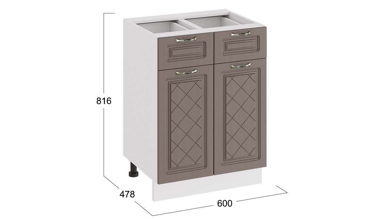 Шкаф напольный с двумя ящиками и двумя дверями «Бьянка» - 1Н6Я1 Белый, Дуб кофе – 1 шт.