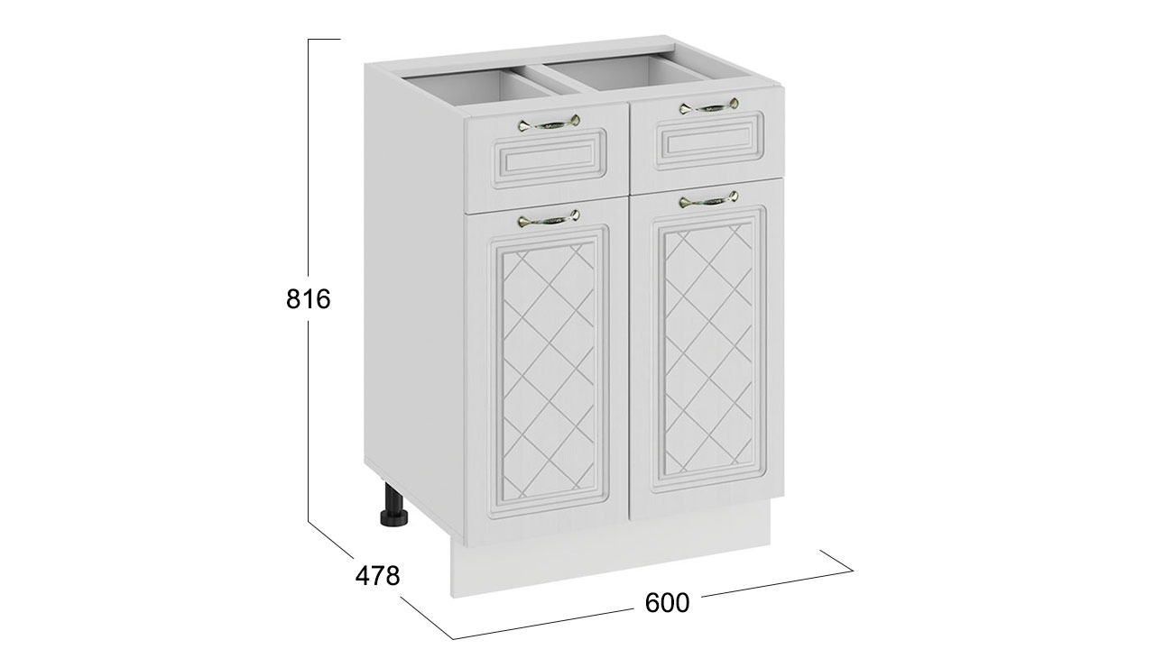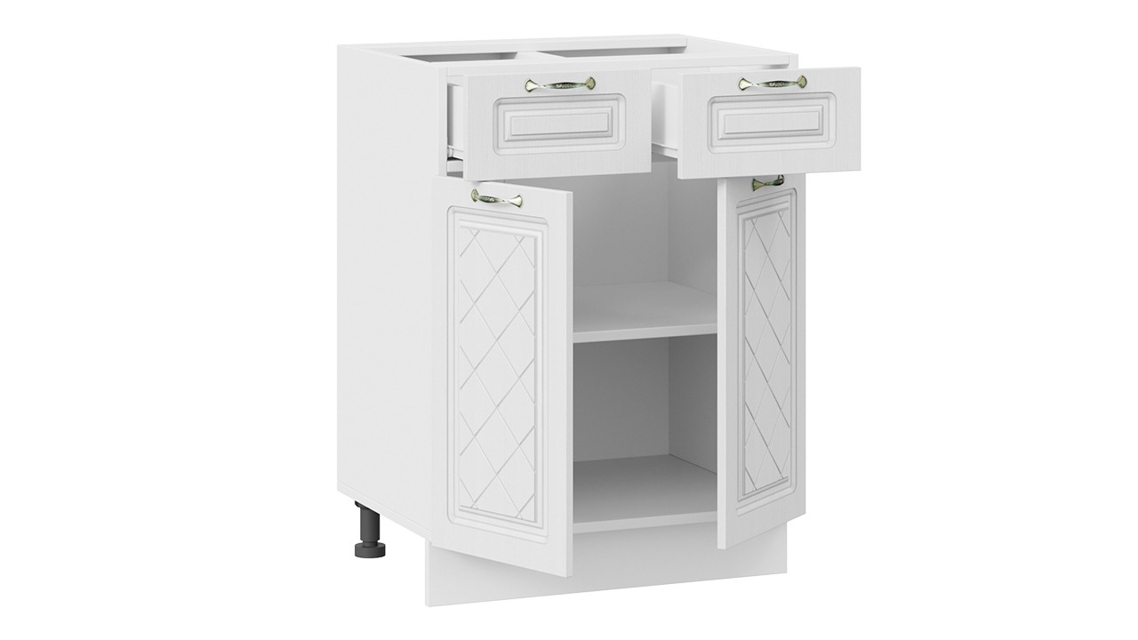 Шкаф напольный с двумя ящиками и двумя дверями «Бьянка» - 1Н6Я1 Белый, Дуб белый – 1 шт.