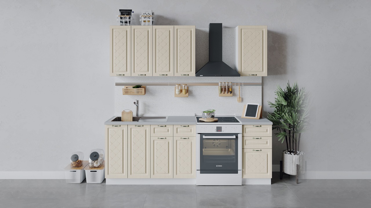 | Габаритный размер набора модулей без учета газовой плиты1 600 | Оттенок фасадаБежевый | Цвет ручкиБрашированная старинная бронза |