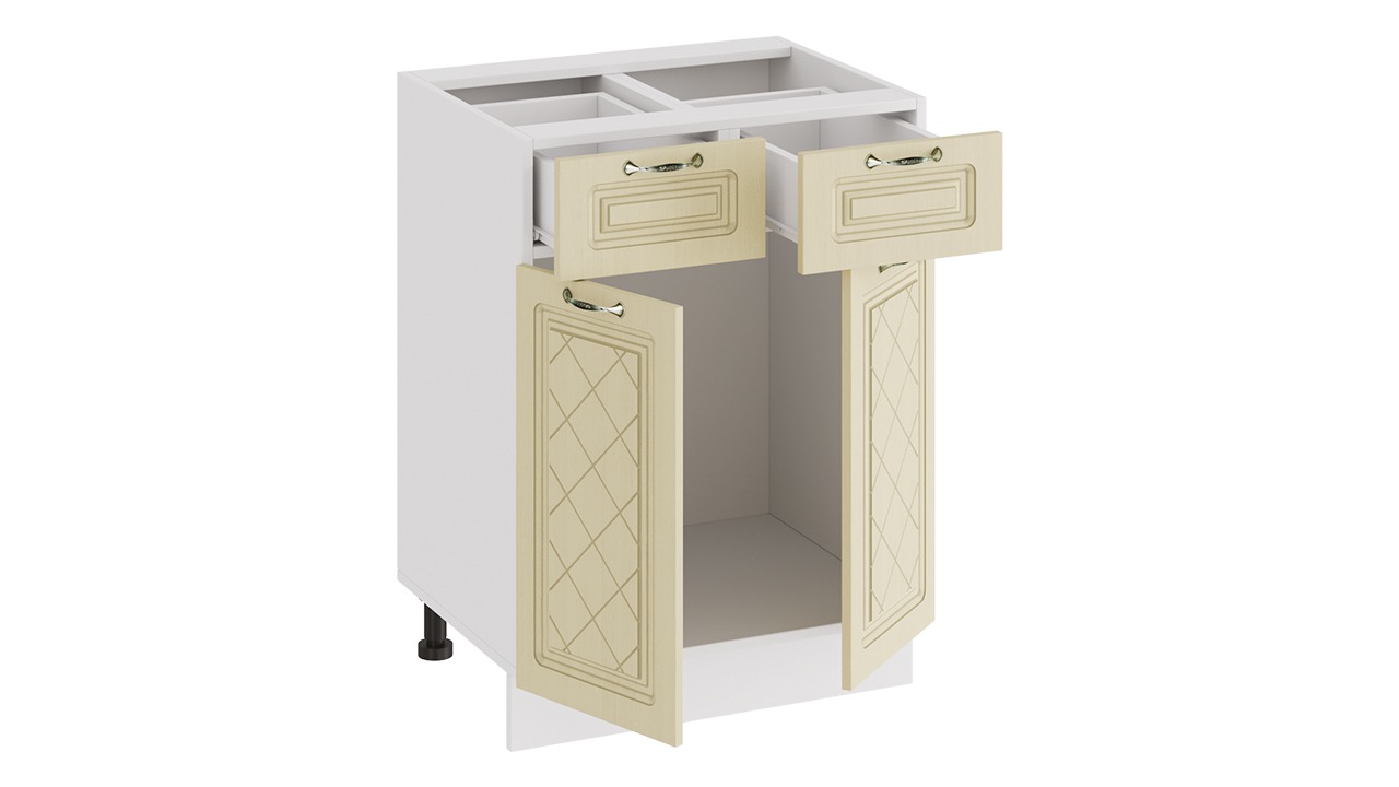Шкаф напольный с двумя ящиками и двумя дверями «Бьянка» - 1Н6Я1 Белый, Дуб ваниль – 1 шт.