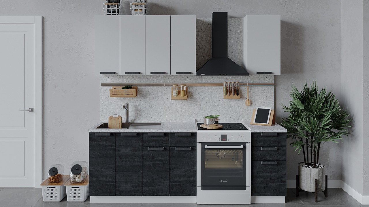 | Габаритный размер набора модулей без учета газовой плиты1 600 | Оттенок фасадаБелый, Черный | Цвет ручкиЧерный |