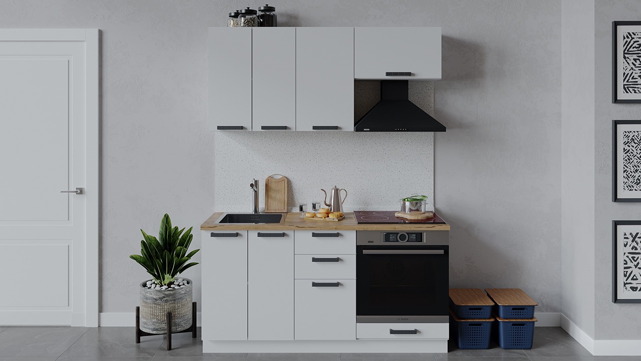 | Габаритный размер набора модулей без учета газовой плиты1 600 | Оттенок фасадаБелый | Цвет ручкиЧерный |