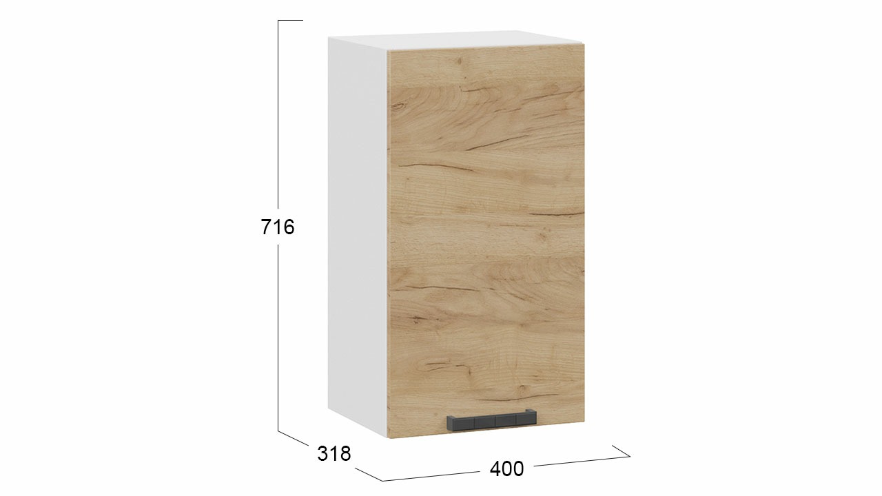 Шкаф навесной c одной дверью «Детройт» - 1В4 Белый, Дуб Крафт золотой – 1 шт.