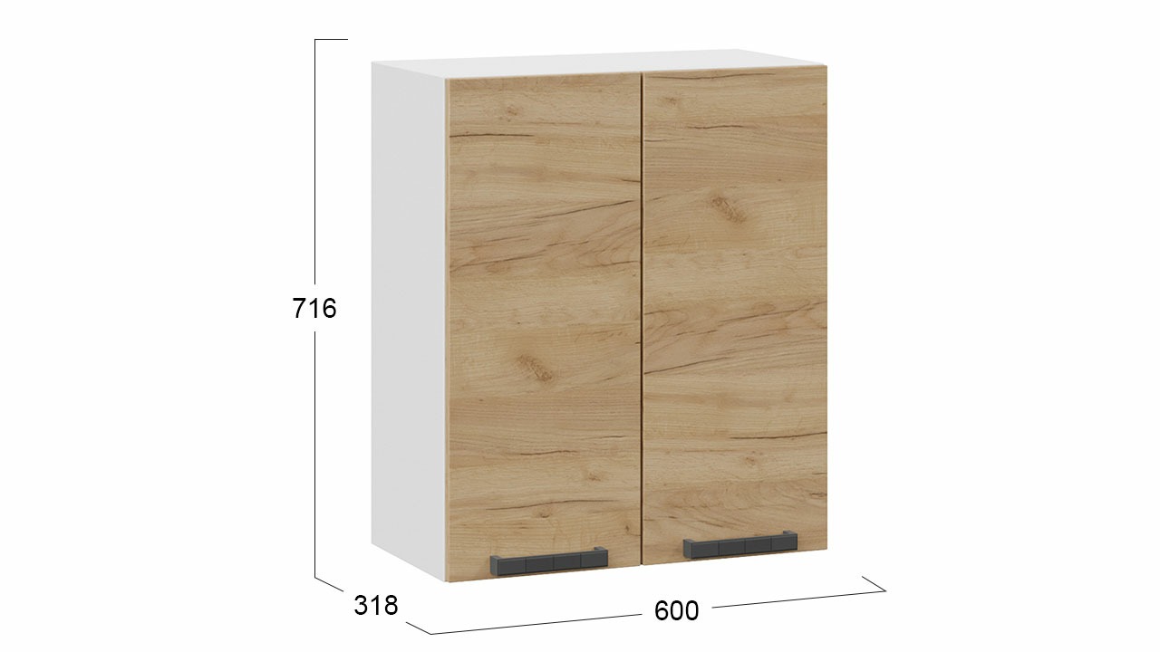 Шкаф навесной c двумя дверями «Детройт» - 1В6 Белый, Дуб Крафт золотой – 1 шт.