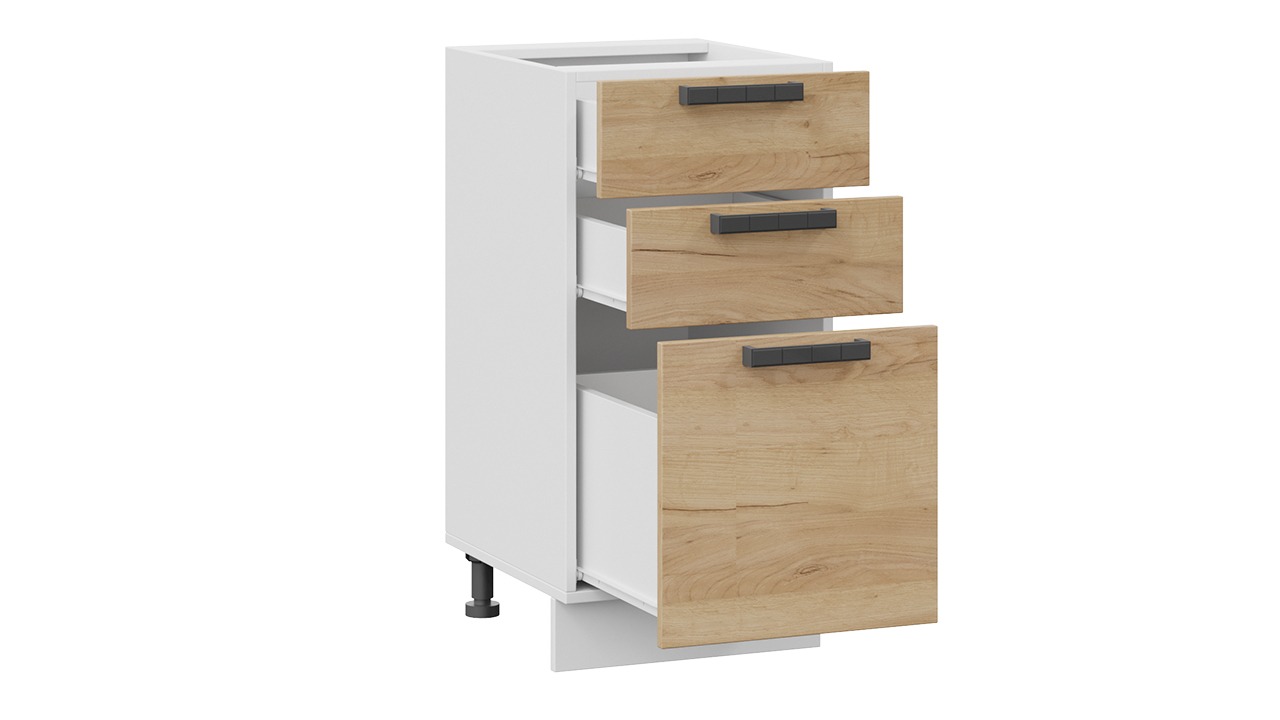 Шкаф напольный с тремя ящиками «Детройт» - 1Н4Я3 Белый, Дуб Крафт золотой – 1 шт.