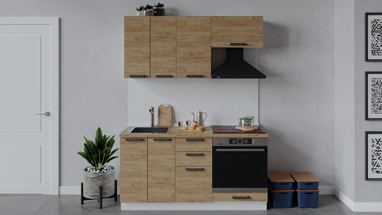 Габаритный размер набора модулей без учета газовой плиты: 160 см.