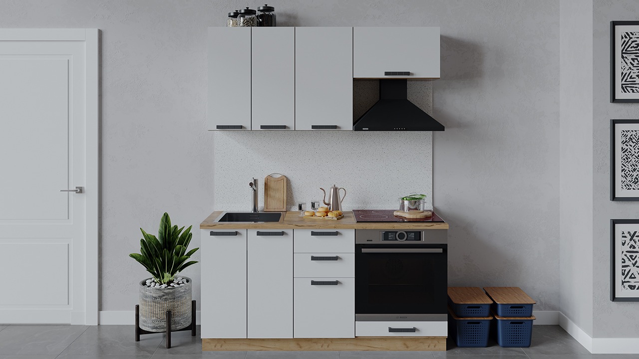 | Габаритный размер набора модулей без учета газовой плиты1 600 | Оттенок фасадаБелый | Цвет ручкиЧерный |
