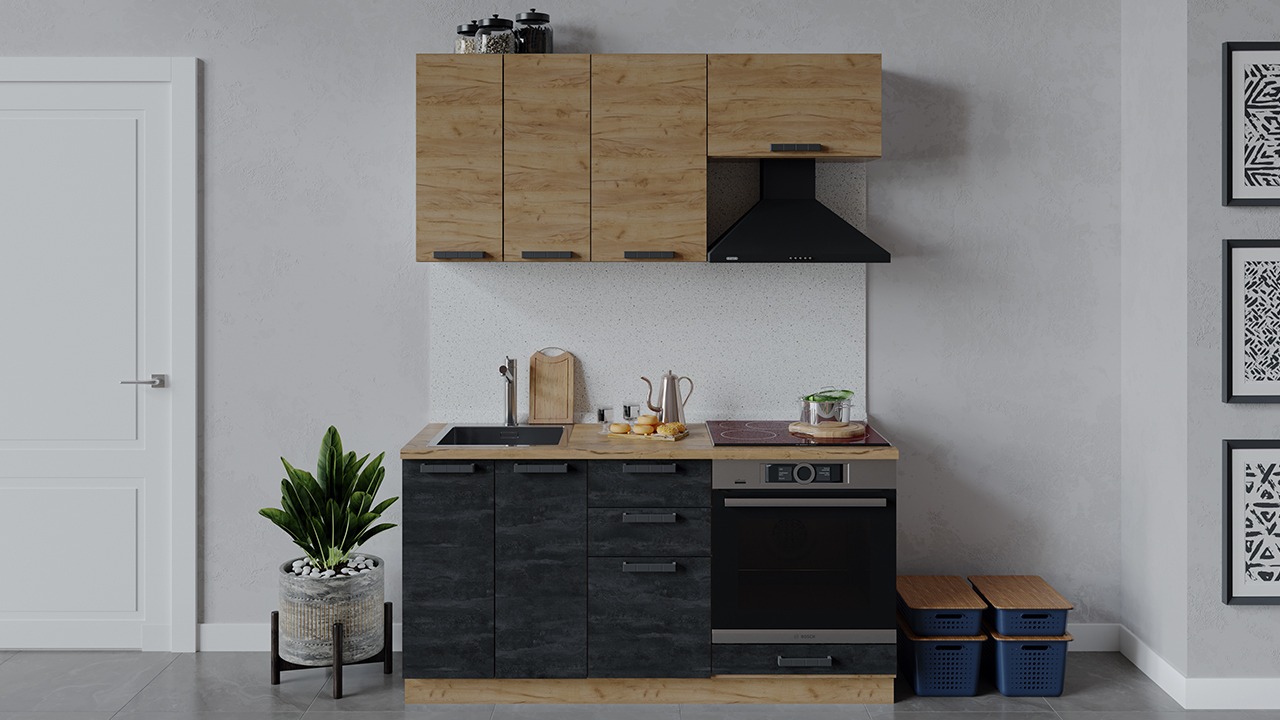 | Габаритный размер набора модулей без учета газовой плиты1 600 | Оттенок фасадаКоричневый, Черный | Цвет ручкиЧерный |