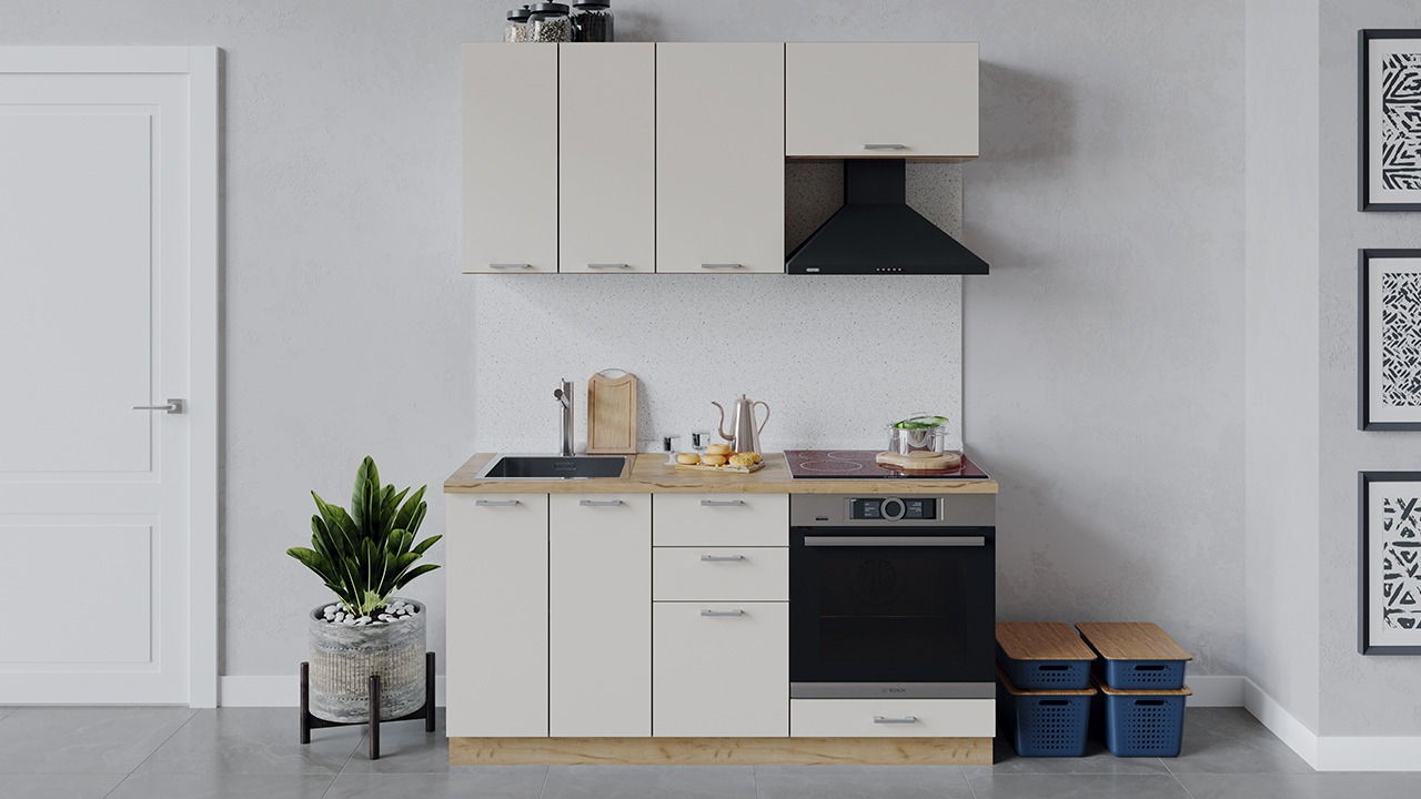 | Габаритный размер набора модулей без учета газовой плиты1 600 | Оттенок фасадаБежевый | Цвет ручкиМеталл |