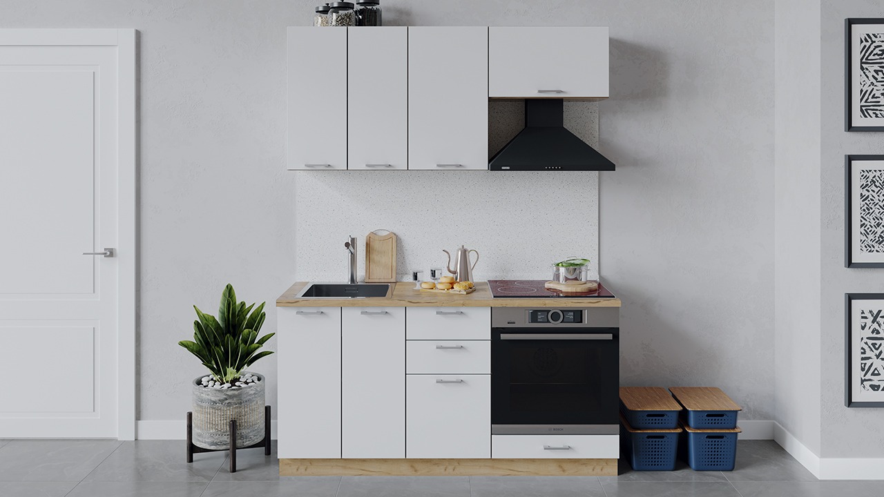 | Габаритный размер набора модулей без учета газовой плиты1 600 | Оттенок фасадаБелый | Цвет ручкиМеталл |