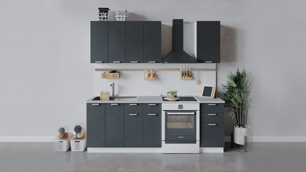 | Габаритный размер набора модулей без учета газовой плиты1 600 | Оттенок фасадаСерый | Цвет ручкиАлюминий |