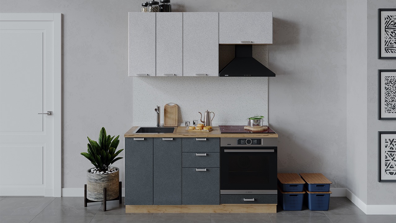 | Габаритный размер набора модулей без учета газовой плиты1 600 | Оттенок фасадаСерый | Цвет ручкиАлюминий |